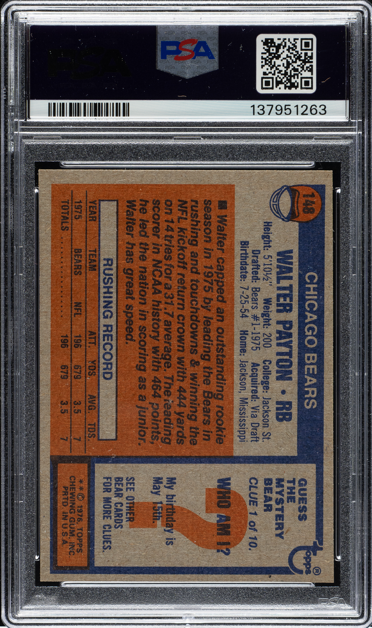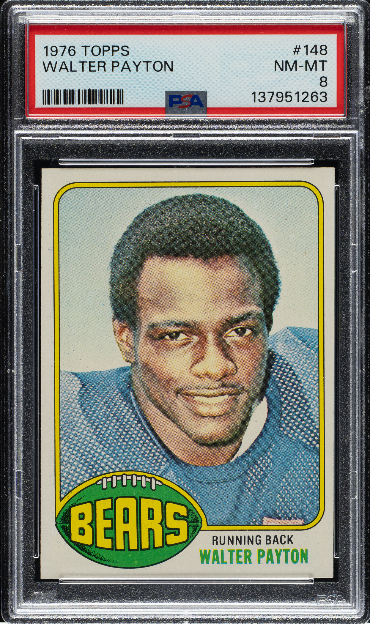 Graded NM-MT 8 by PSA (submitted by REA). Chicago Bears Hall of Famer Walter Payton.