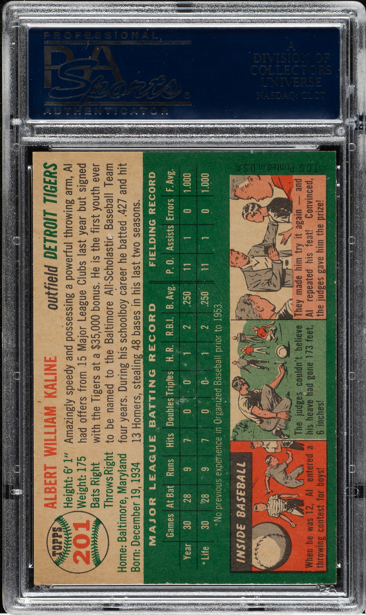 Graded NM 7 by PSA. Detroit Tigers Hall of Famer Al Kaline.