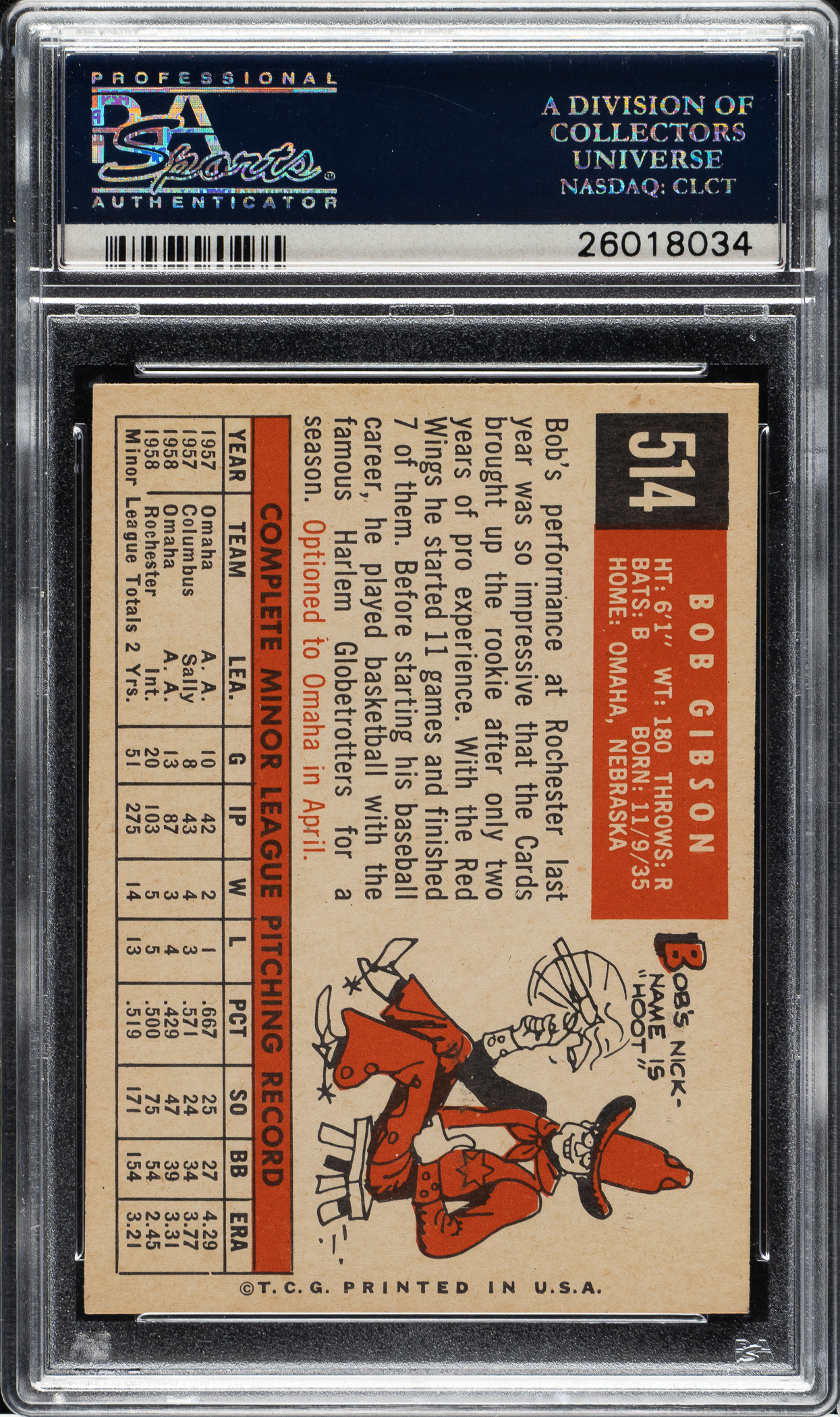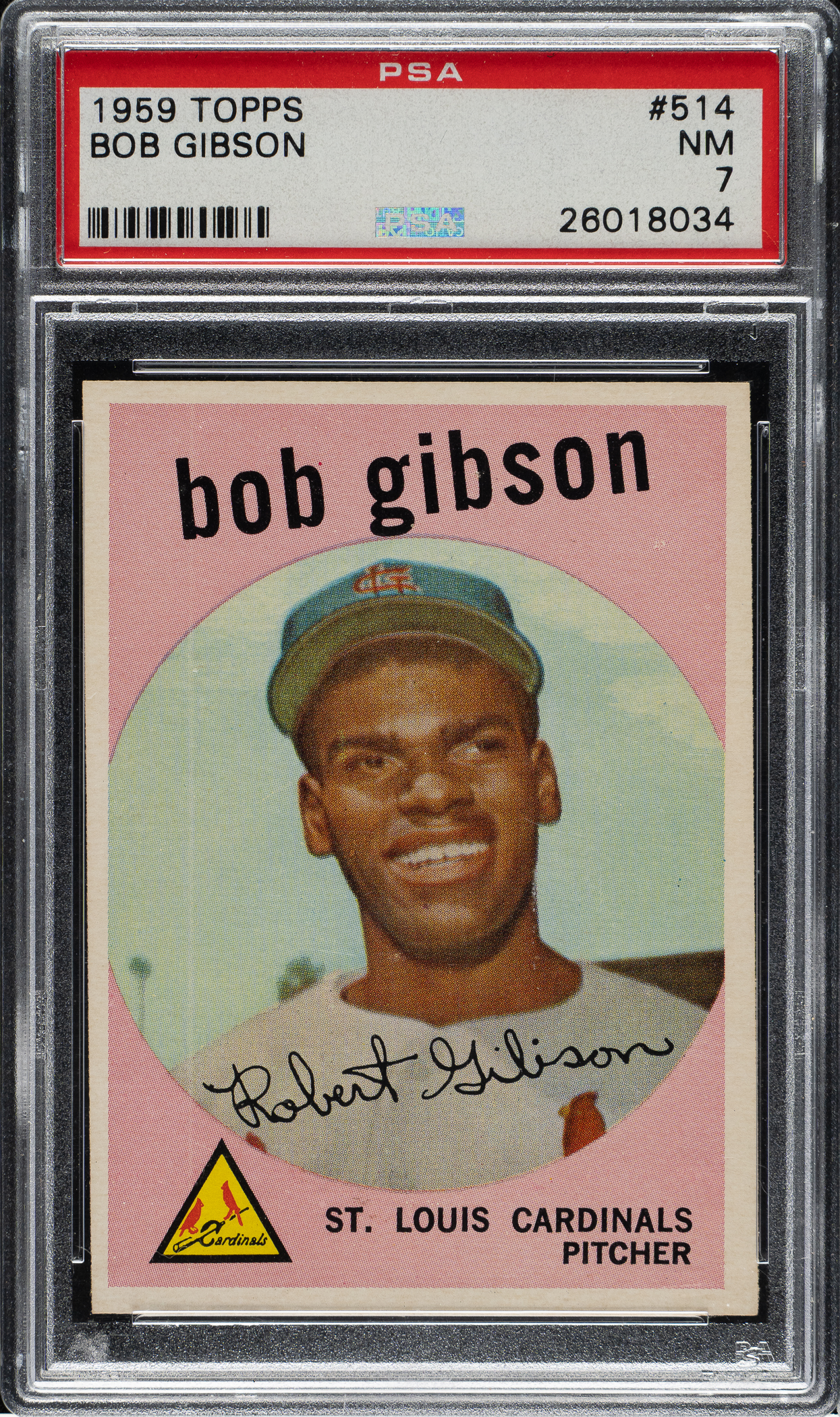 Graded NM 7 by PSA. St. Louis Cardinals Hall of Famer Bob Gibson.