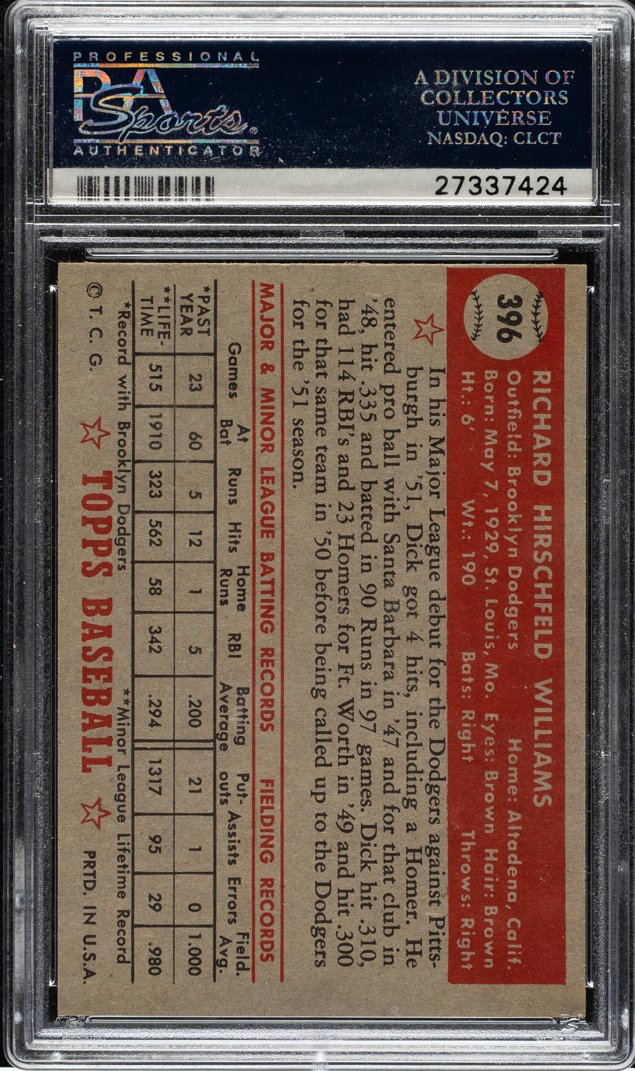 Graded EX-MT 6 by PSA. Brooklyn Dodgers Hall of Famer Dick Williams.