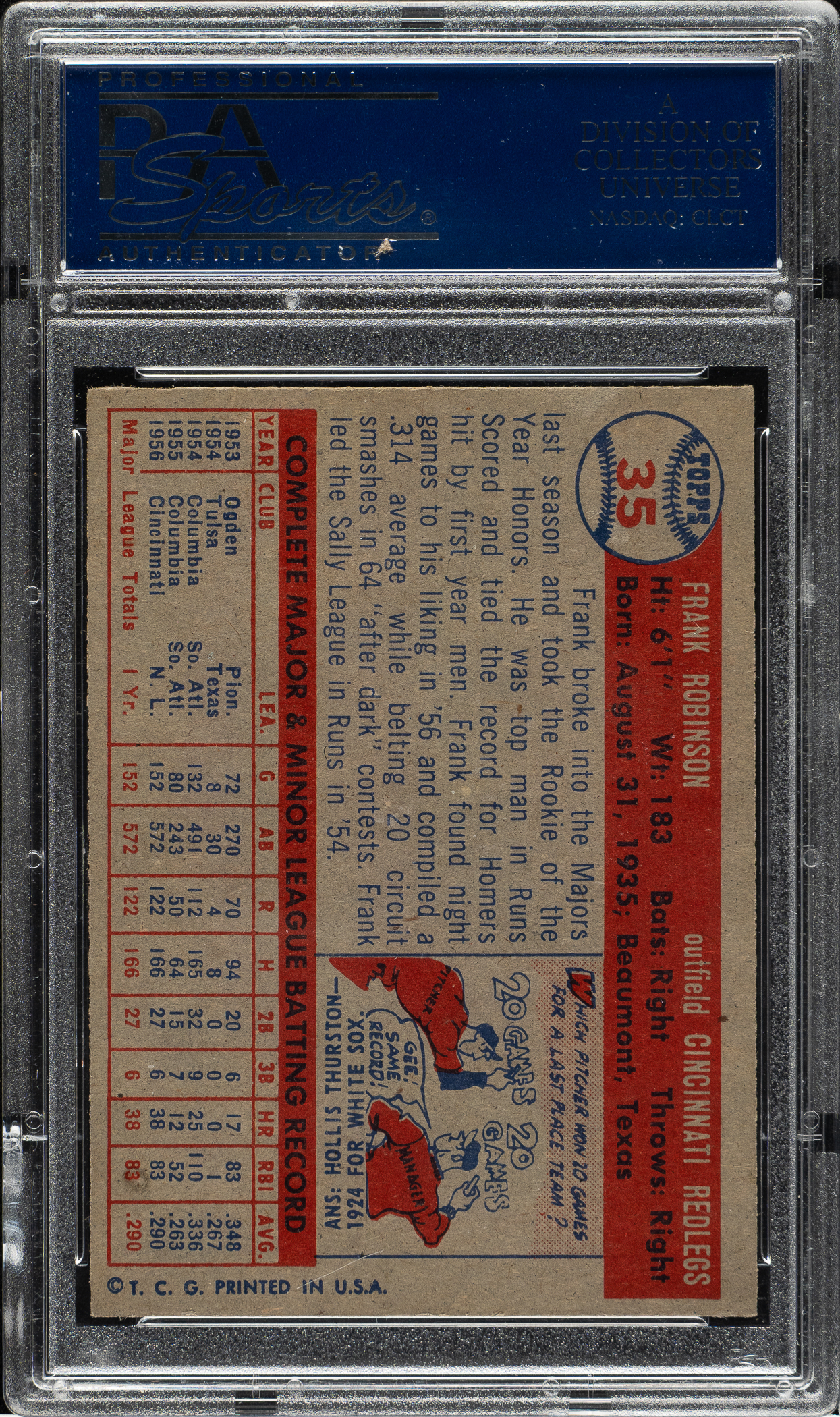 Graded NM 7 by PSA. Cincinnati Reds Hall of Famer Frank Robinson.