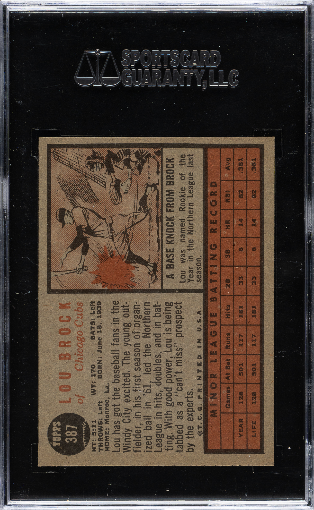 Graded NM/MT 88 by SGC. Chicago Cubs Hall of Famer Lou Brock.