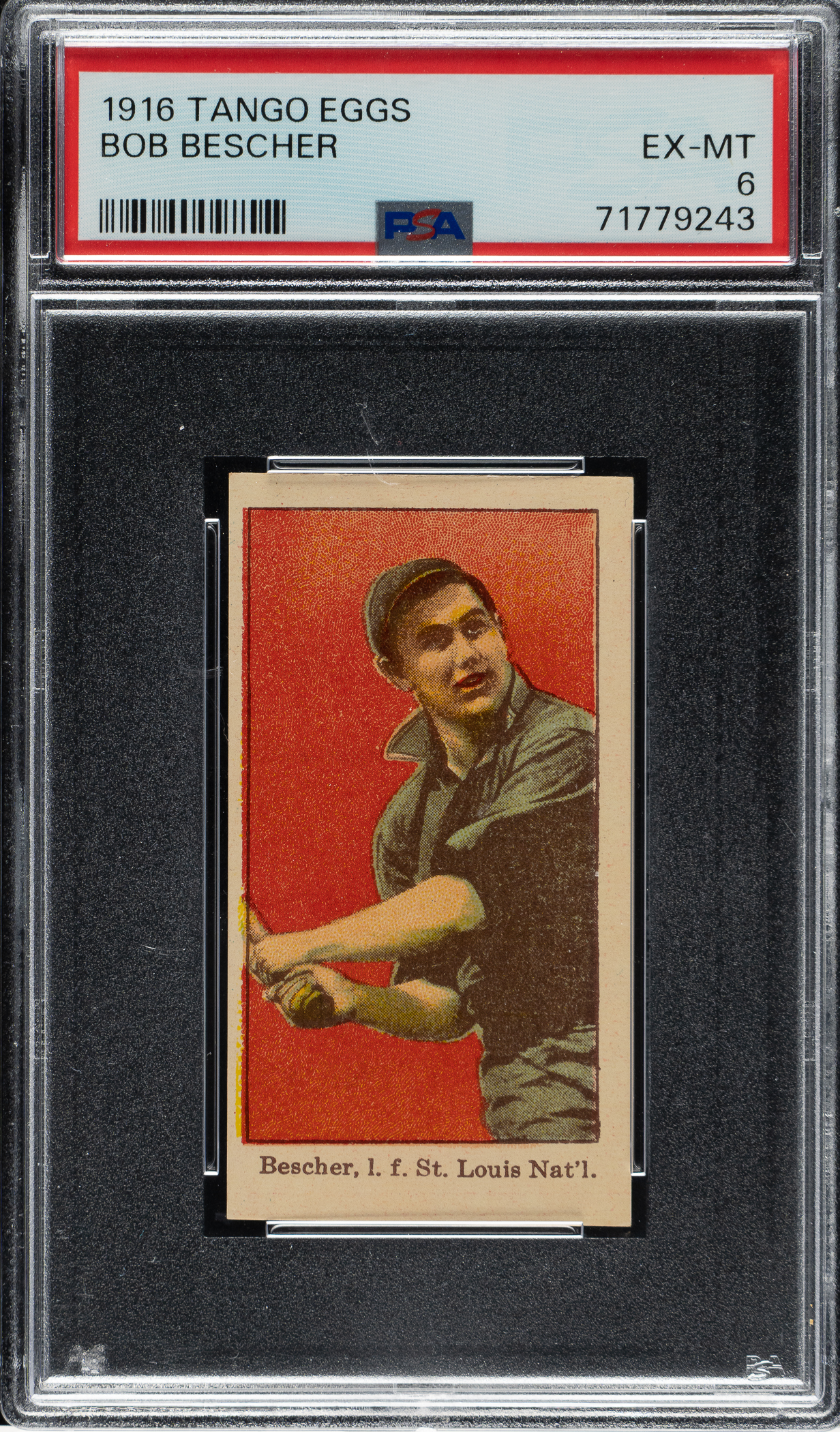 Lot # 1287: 1916 Tango Brand Eggs Bob Bescher PSA EX-MT 6