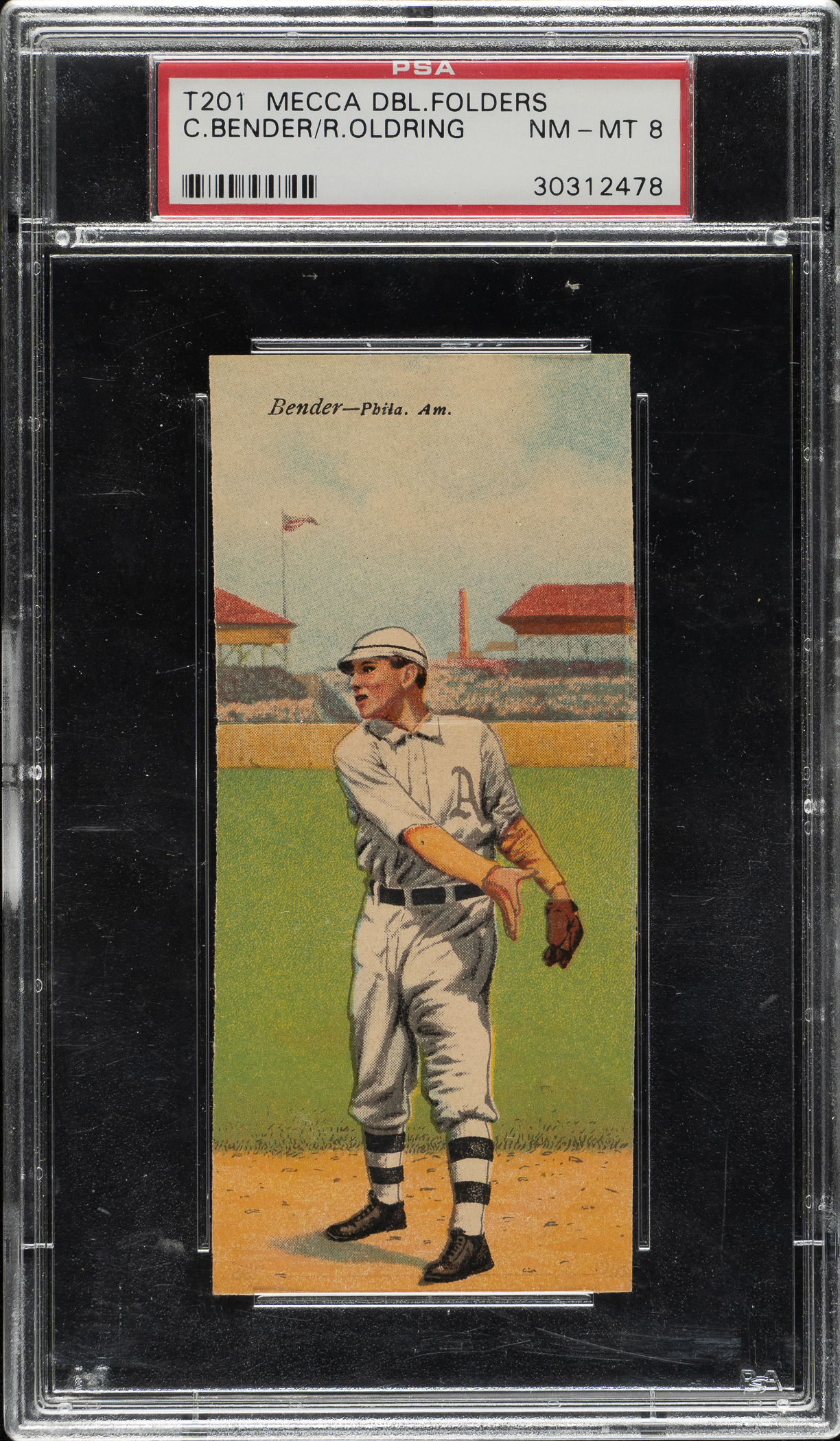 Graded NM-MT 8 by PSA. Philadelphia Athletics Hall of Famer Chief Bender. Highest-graded example!