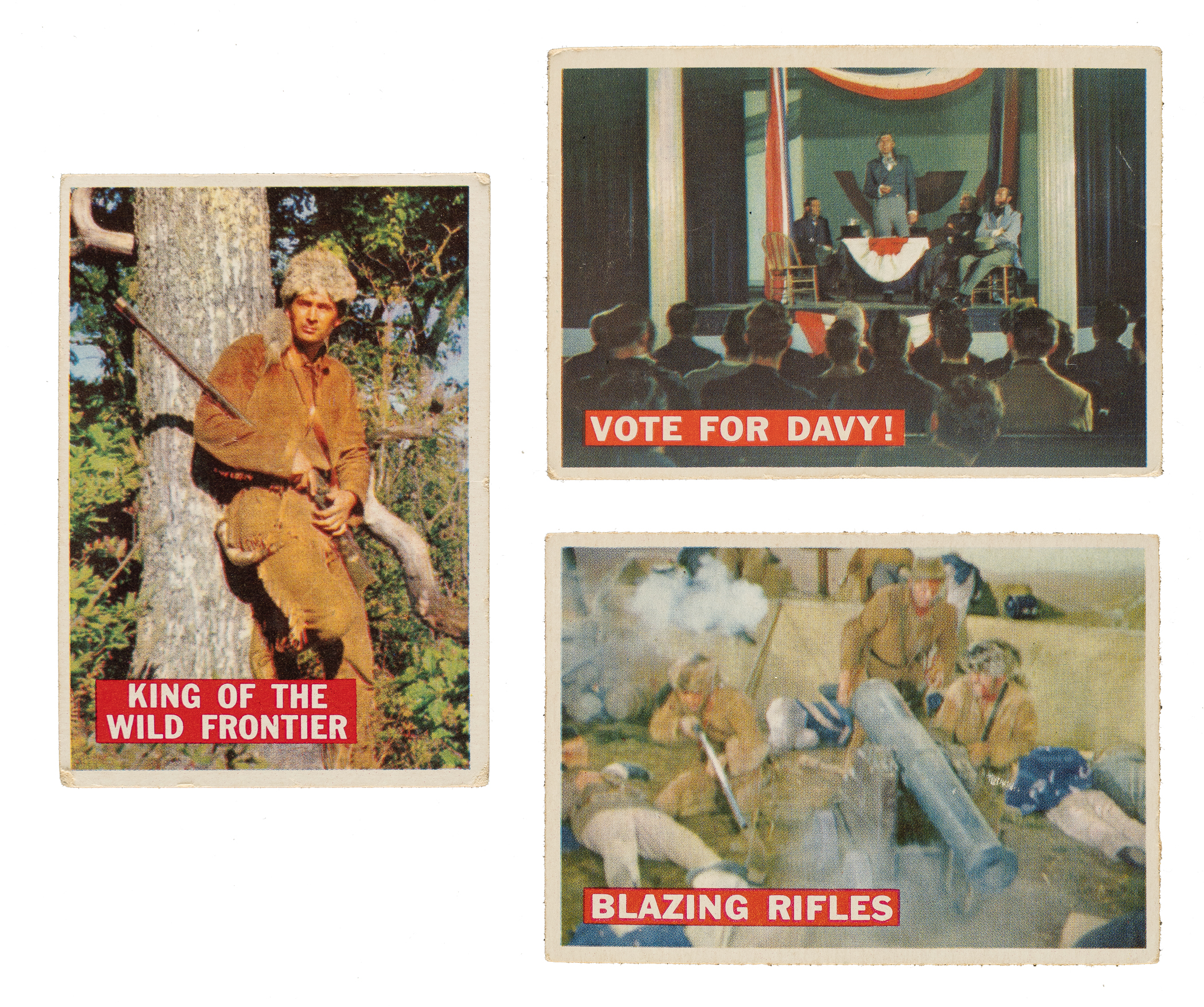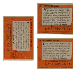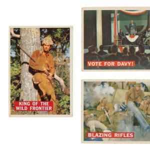 Complete 80-card set of 1956 Topps "Davy Crockett" Orange Back trading cards. Condition ranges from Fr to Vg (averaging Gd), with a couple Vg-Ex and a few Pr. Total: 80 cards. The size/weight of this item requires that there will be an additional shipping charge for this lot.