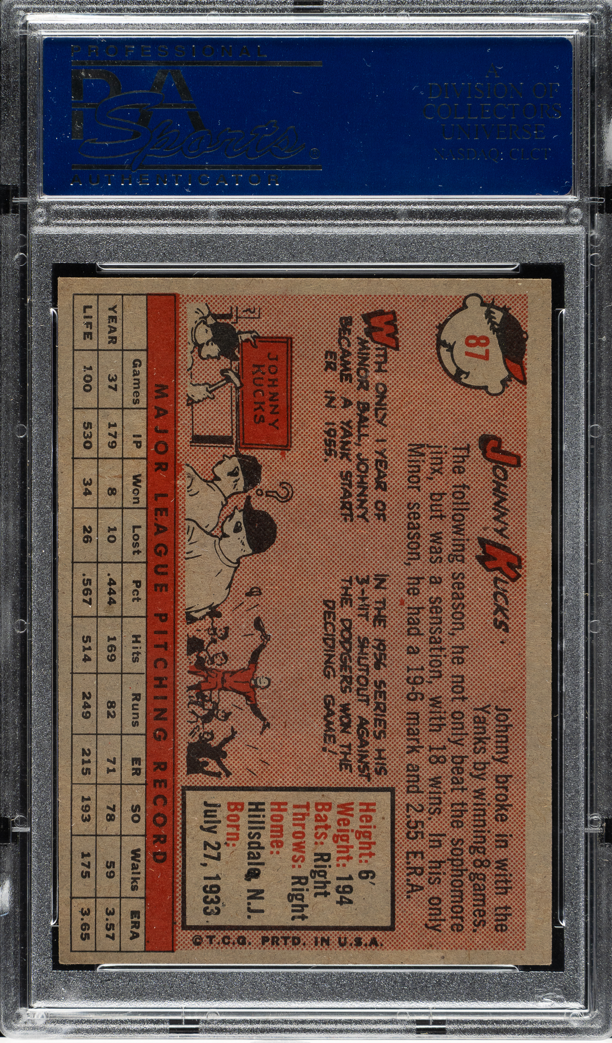 Lot # 1948: 1958 Topps #87 Johnny Kucks PSA NM-MT 8