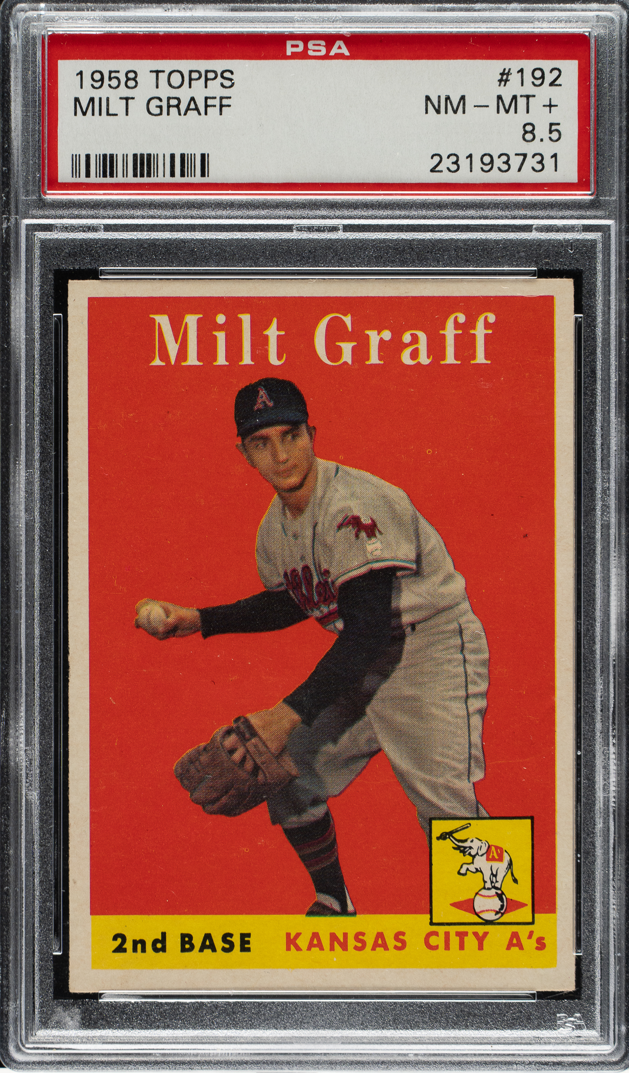 Graded NM-MT+ 8.5 by PSA. Kansas City Athletics.