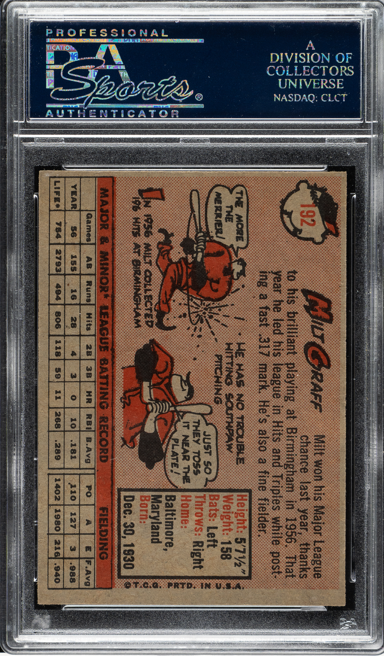 Lot # 1919: 1958 Topps #192 Milt Graff PSA NM-MT+ 8.5