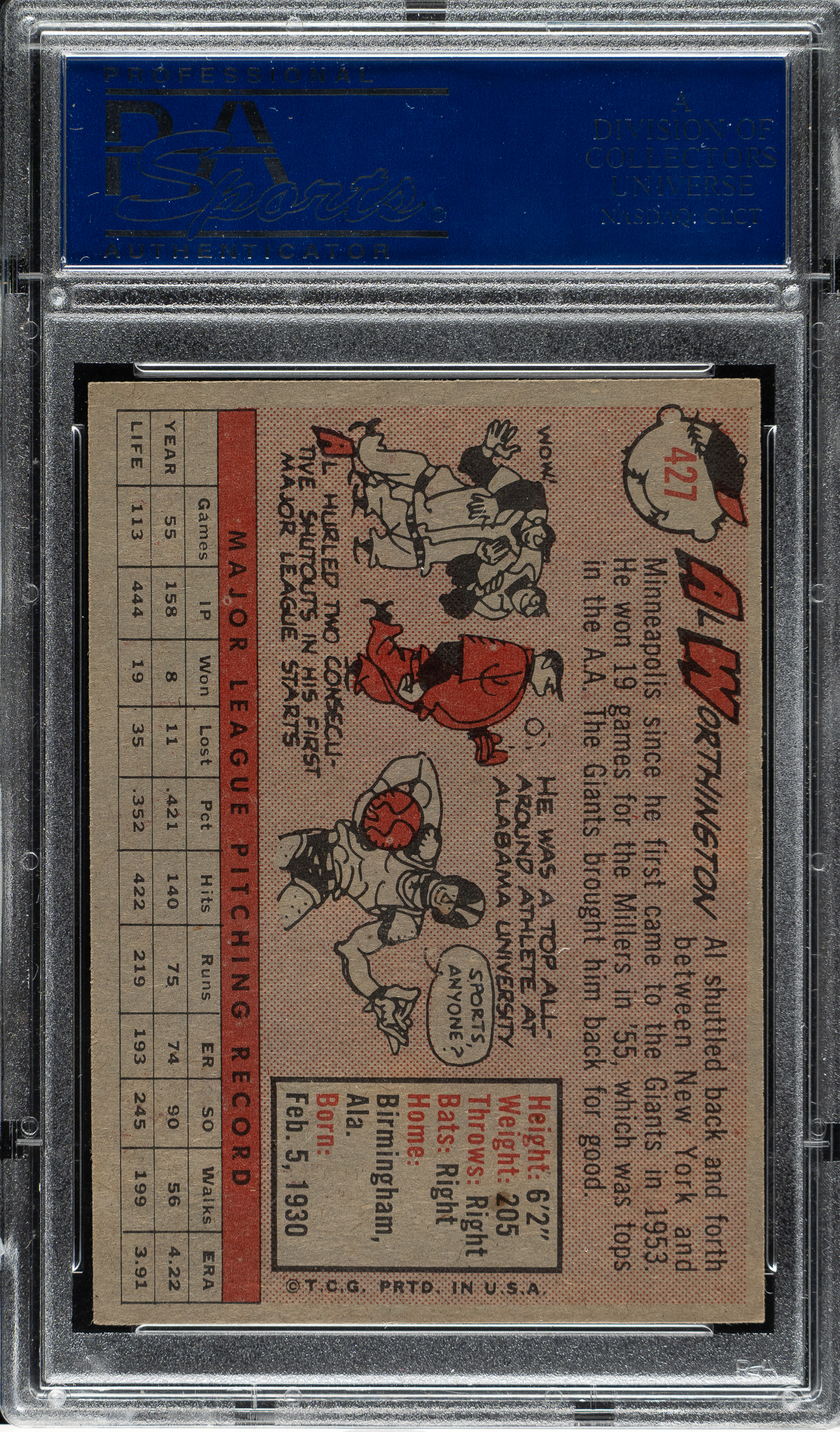 Lot # 1932: 1958 Topps #427 Al Worthington PSA NM-MT+ 8.5