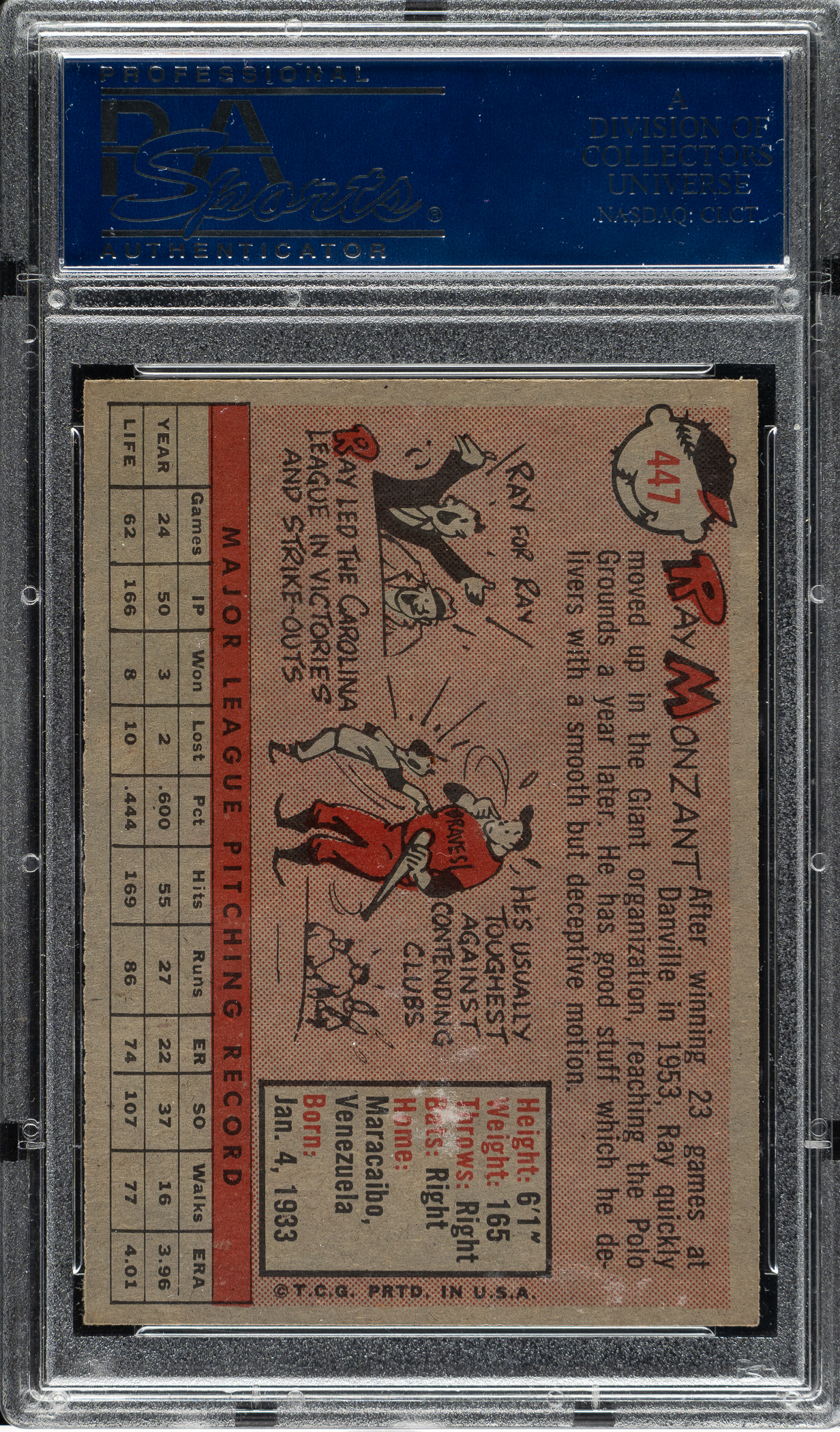 Lot # 1933: 1958 Topps #447 Ray Monzant PSA NM-MT+ 8.5