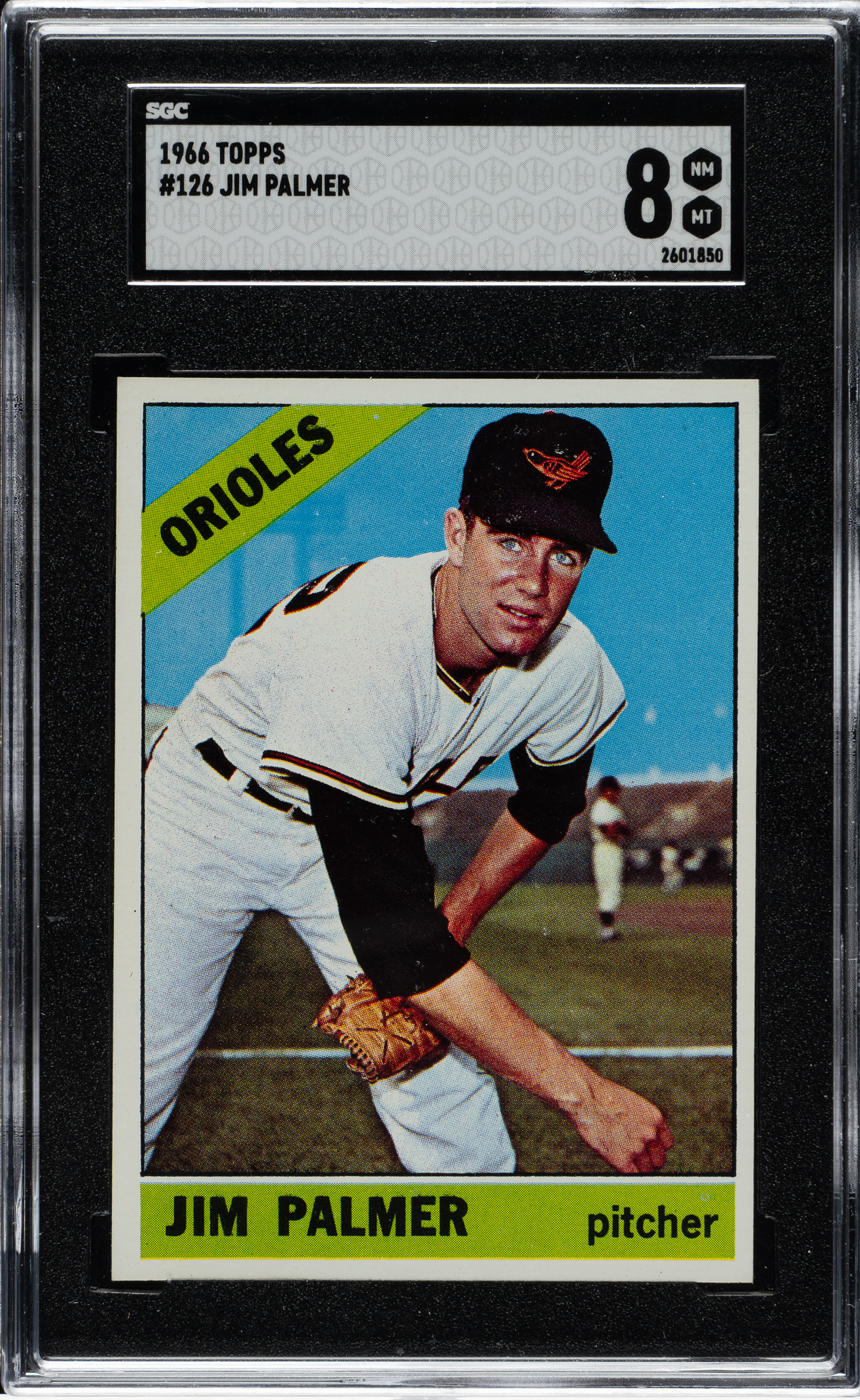 Graded NM/MT 8 by SGC. Baltimore Orioles Hall of Famer Jim Palmer.