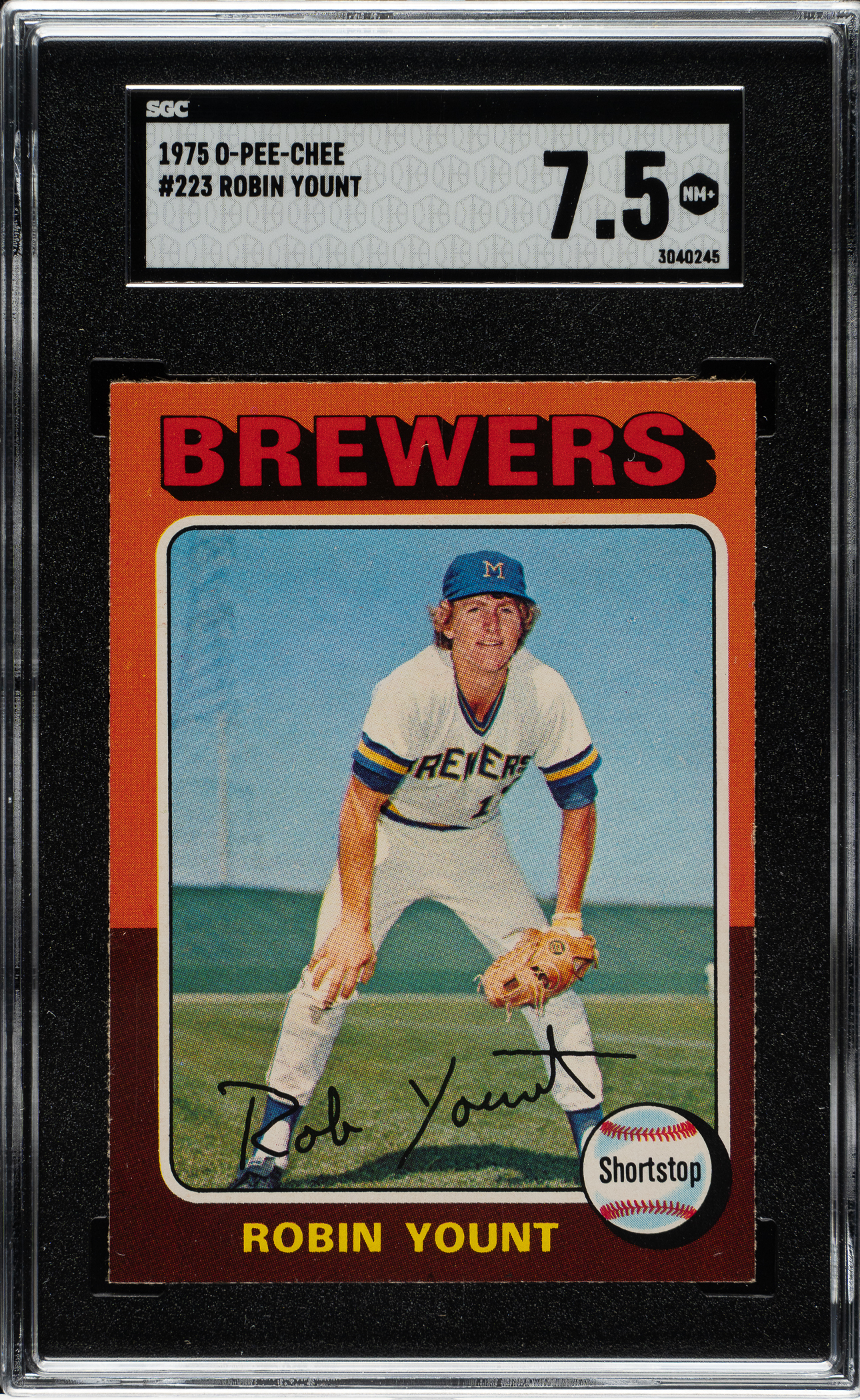 Graded NM+ 7.5 by SGC. Milwaukee Brewers Hall of Famer Robin Yount.