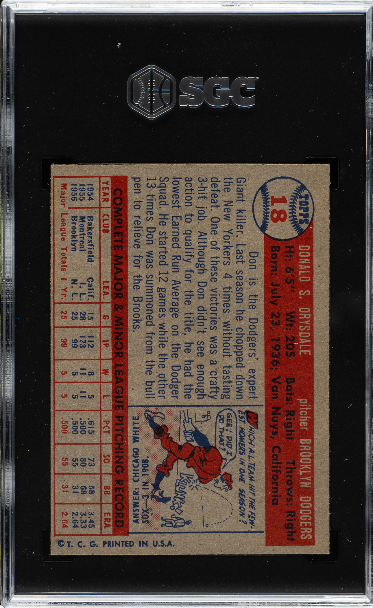 Graded NM 7 by SGC. Brooklyn Dodgers Hall of Famer Don Drysdale.