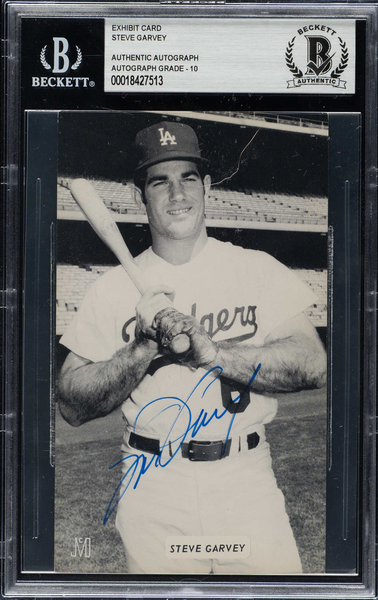 Beckett has encapsulated the card, grading the signature GEM MINT 10. Los Angeles Dodgers.