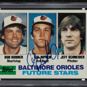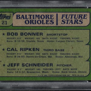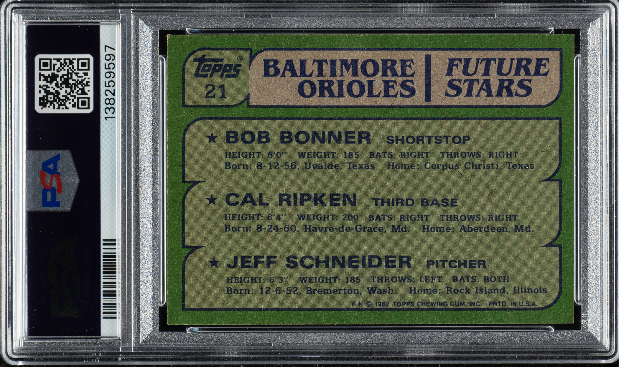 Lot 2379 1982 Topps Unopened Cello Pack PSA NM-MT 8 - Cal Ripken Jr. Rookie on Top and Lee Smith Rookie on Back