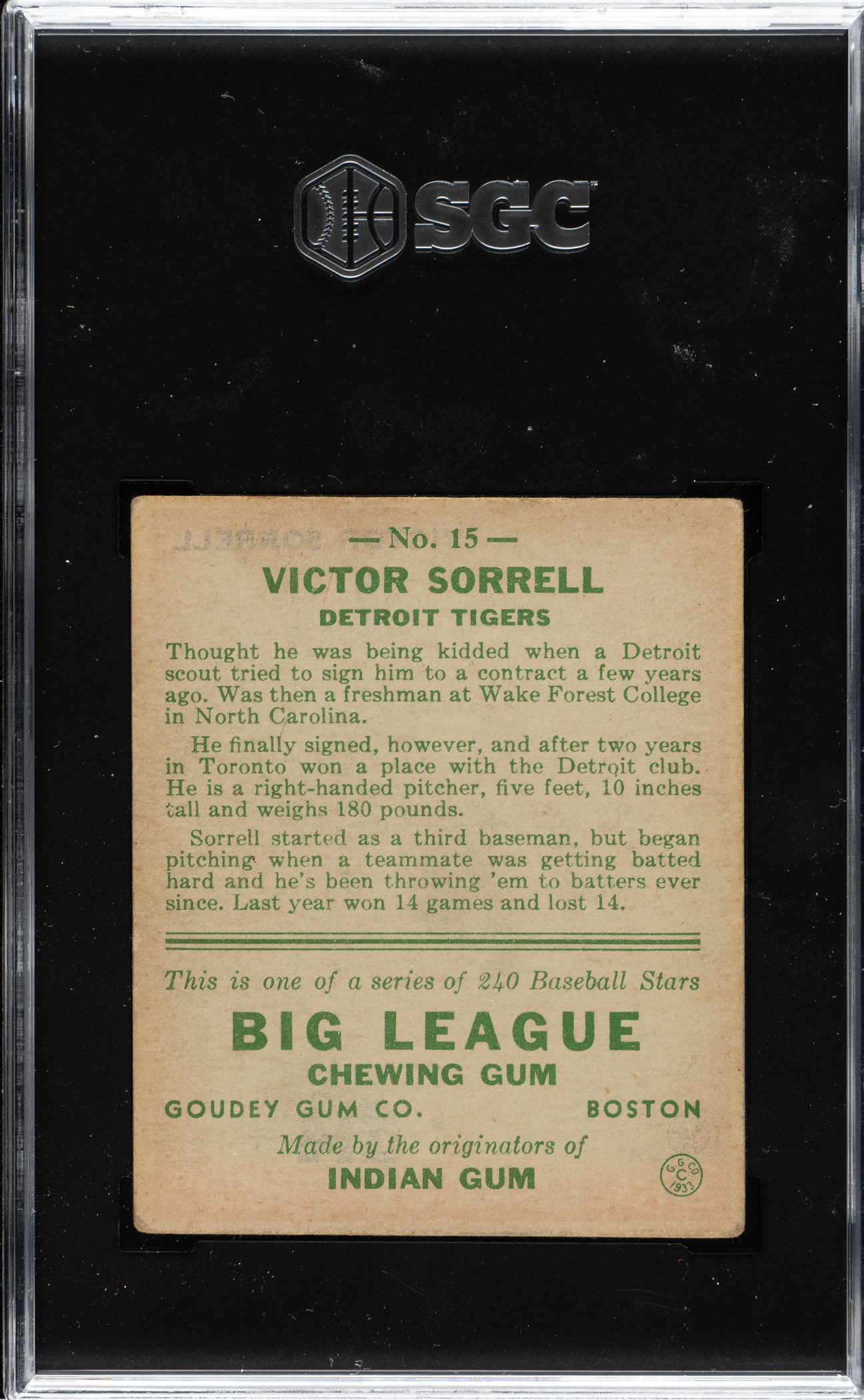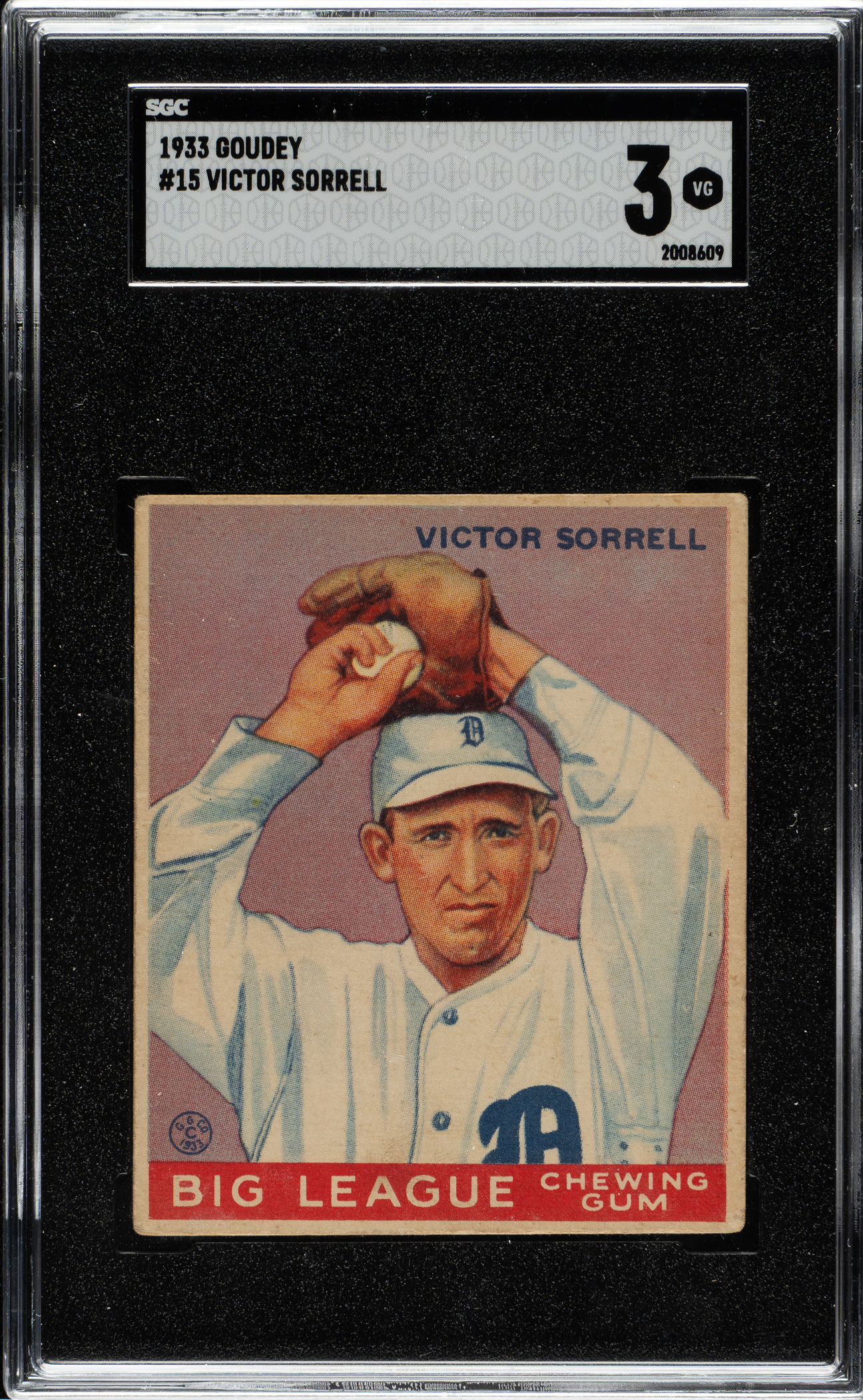 Lot # 1396: 1933 R319 Goudey #15 Victor Sorrell SGC VG 3