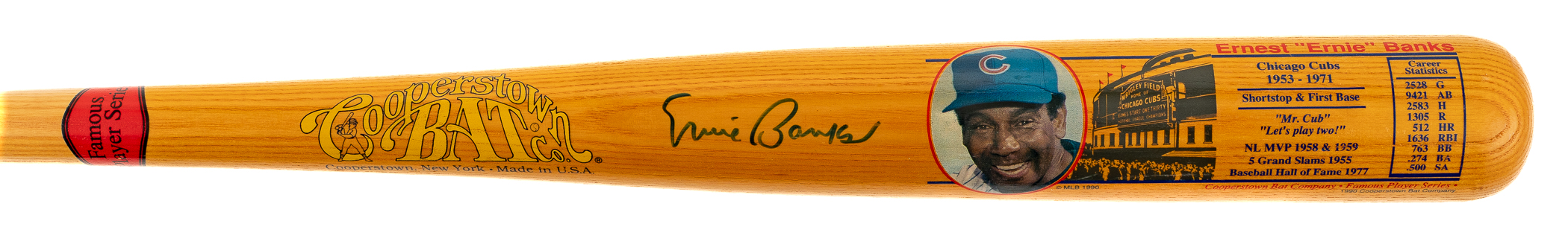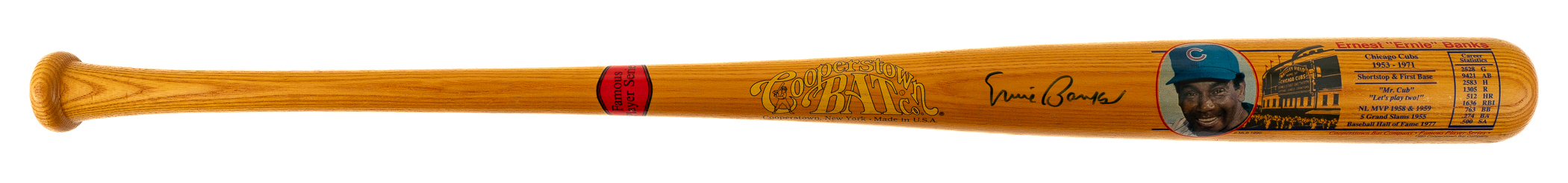 Chicago Cubs Hall of Famer Ernie Banks signed bat from the Cooperstown Bat Company's "Famous Player Series." Auction LOA from James Spence/JSA. The size/weight of this item requires that there will be an additional shipping charge for this lot.