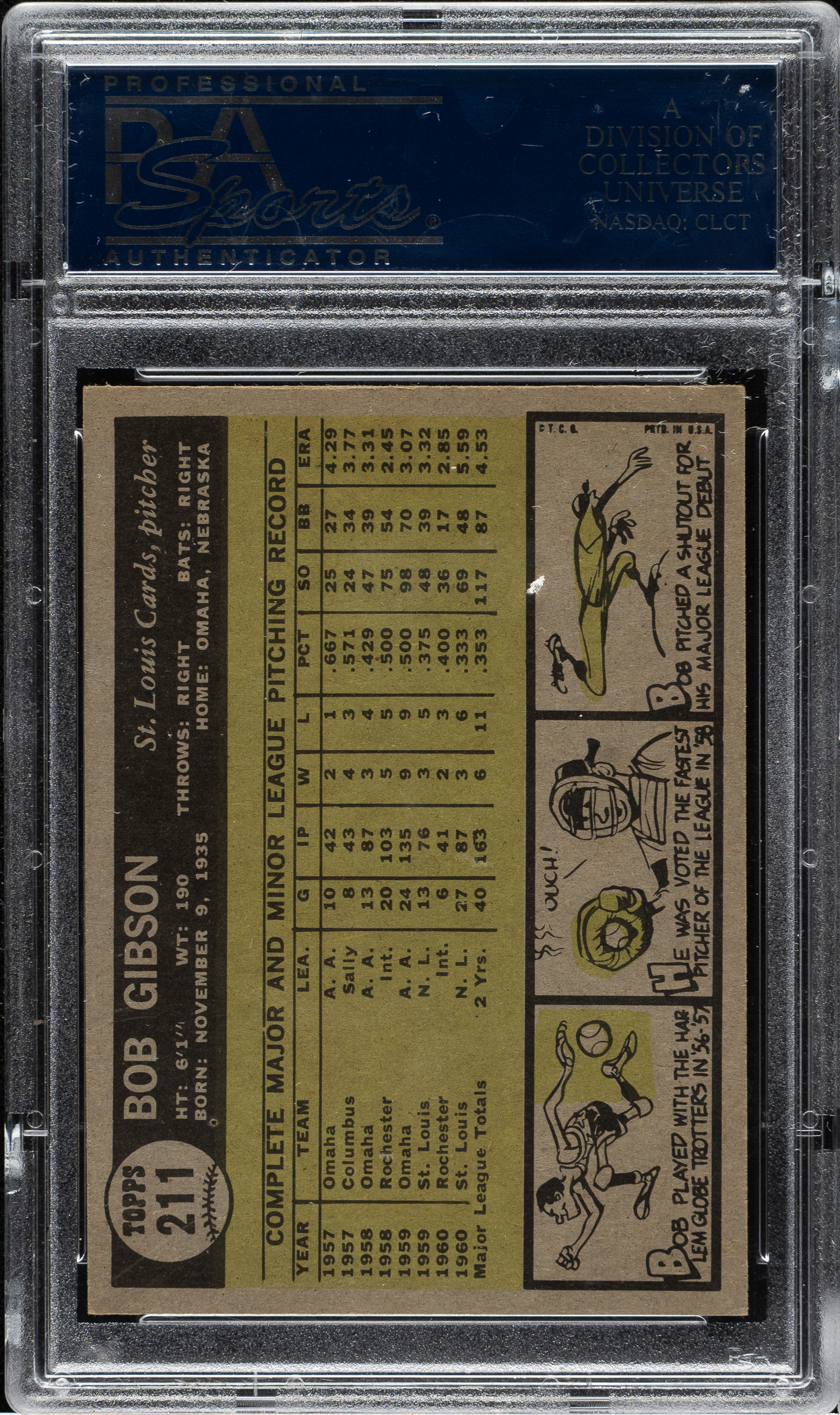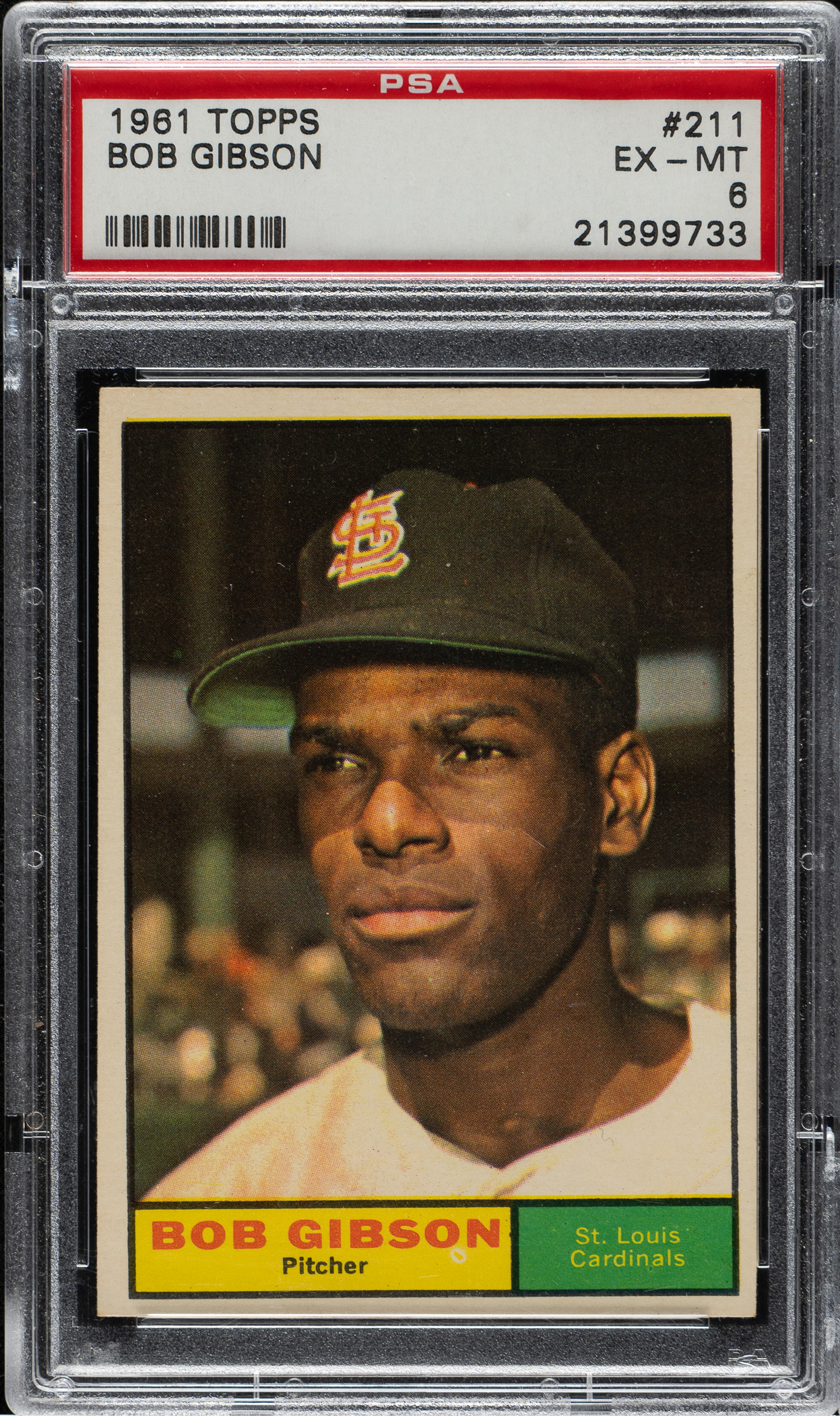 Graded EX-MT 6 by PSA. St. Louis Cardinals Hall of Famer Bob Gibson.