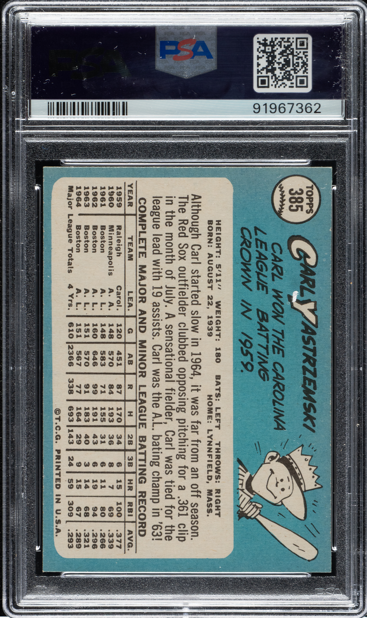 Lot # 2070: 1965 Topps #385 Carl Yastrzemski PSA NM 7