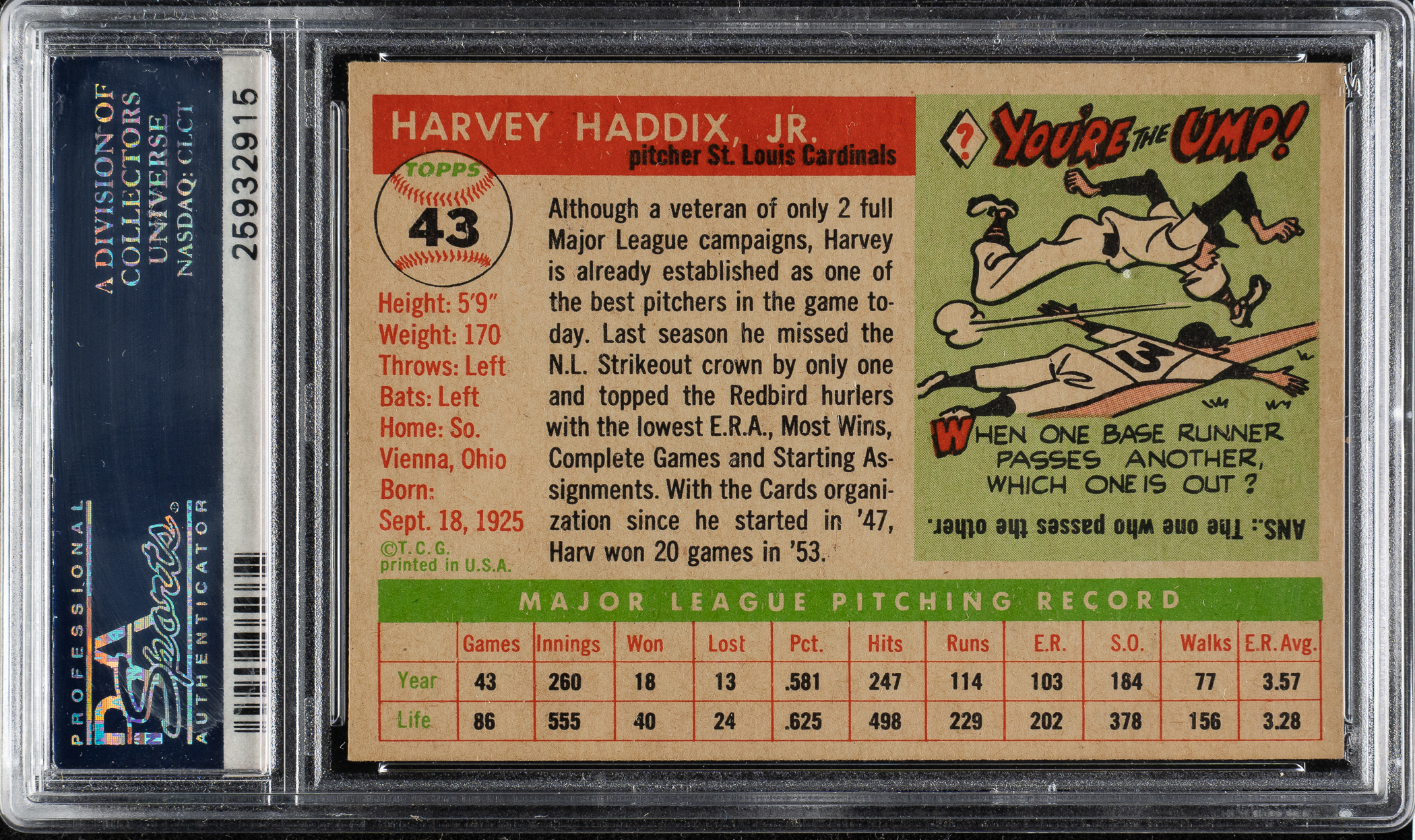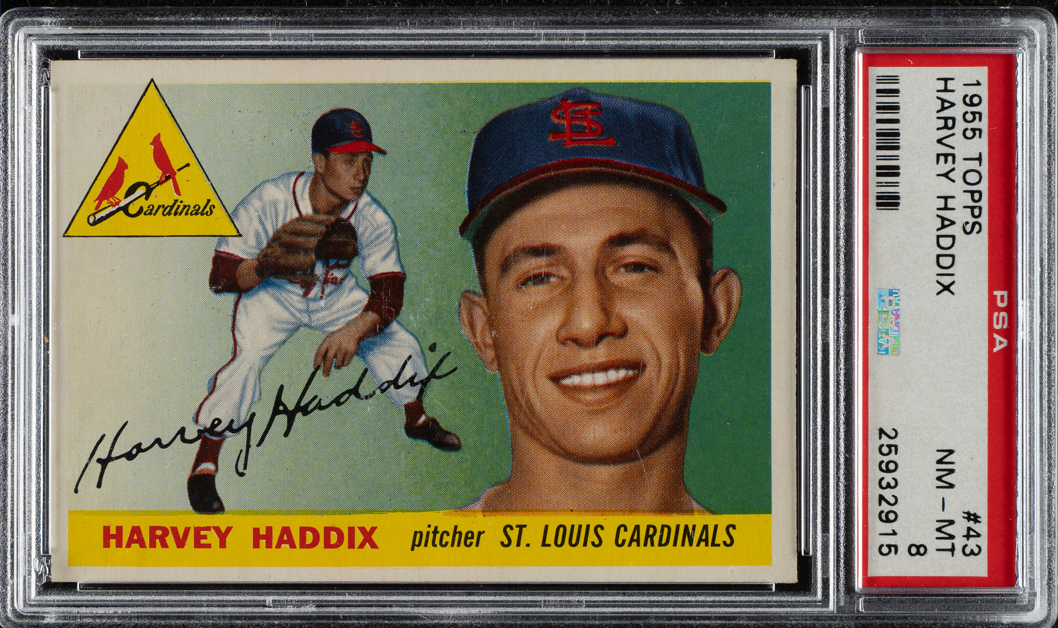Lot # 1874: 1955 Topps #43 Harvey Haddix PSA NM-MT 8