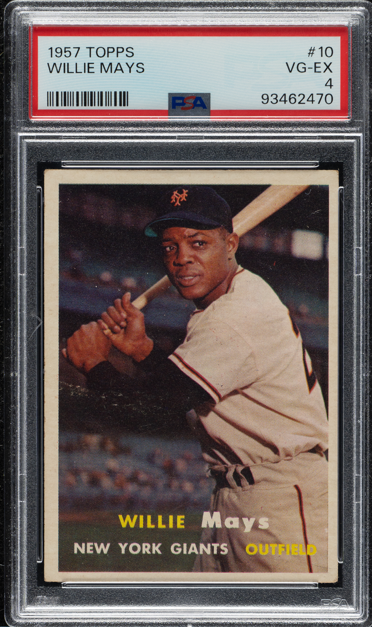 Lot # 1897: 1957 Topps #10 Willie Mays PSA VG-EX 4