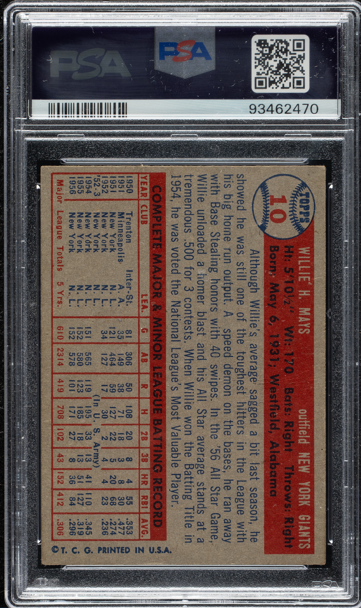 Graded VG-EX 4 by PSA. New York Giants Hall of Famer Willie Mays.