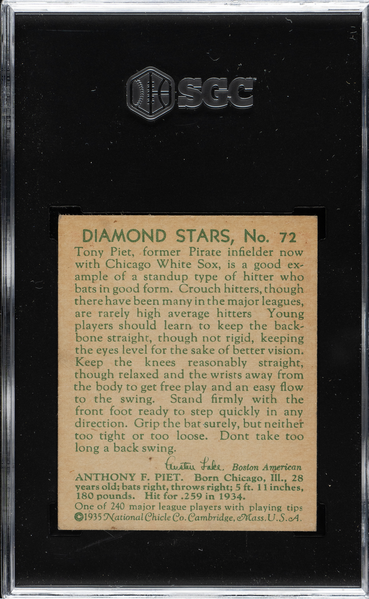 Lot # 1589: 1934-1936 R327 Diamond Stars #72 Tony Piet SGC EX 5