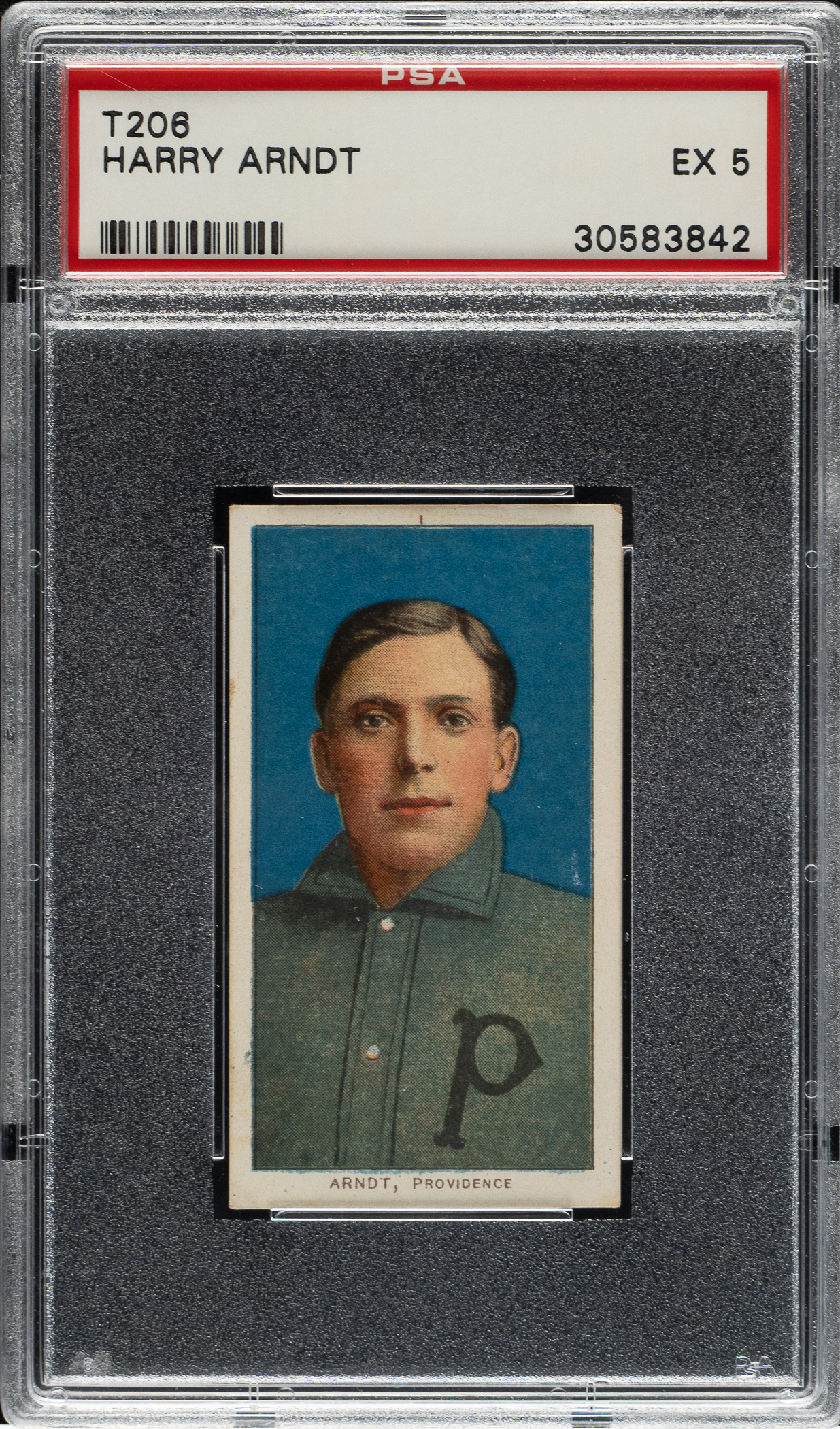 Graded EX 5 by PSA. Providence Grays. One of only two examples of this front/back combination graded at this level by PSA, with none higher (please note this card is not designated as being one of the highest graded in the PSA pop report as it was graded before PSA included backs on their slabs).
