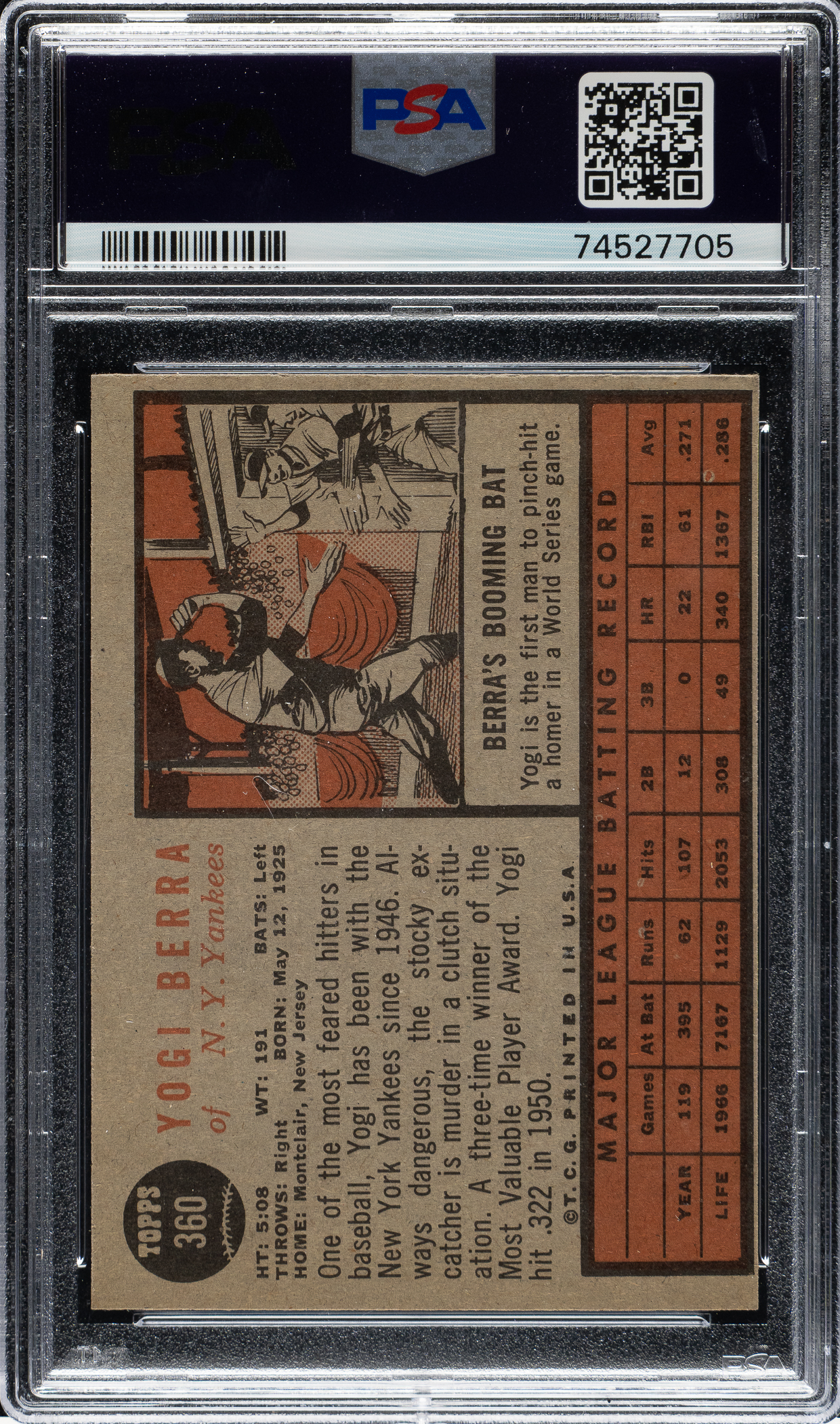 Graded EX 5 by PSA. New York Yankees Hall of Famer Yogi Berra.