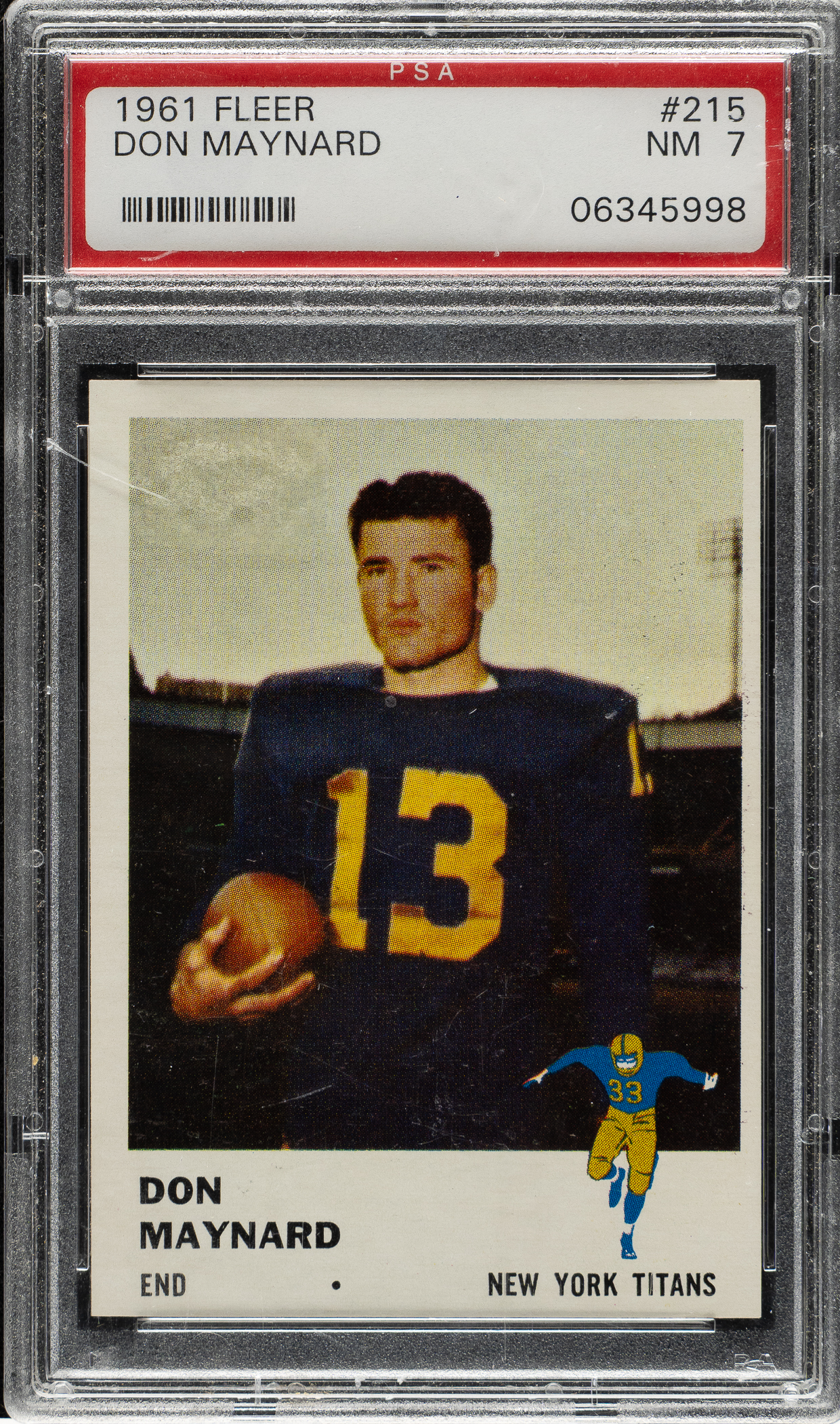 Graded NM 7 by PSA. New York Titans football Hall of Famer Don Maynard.