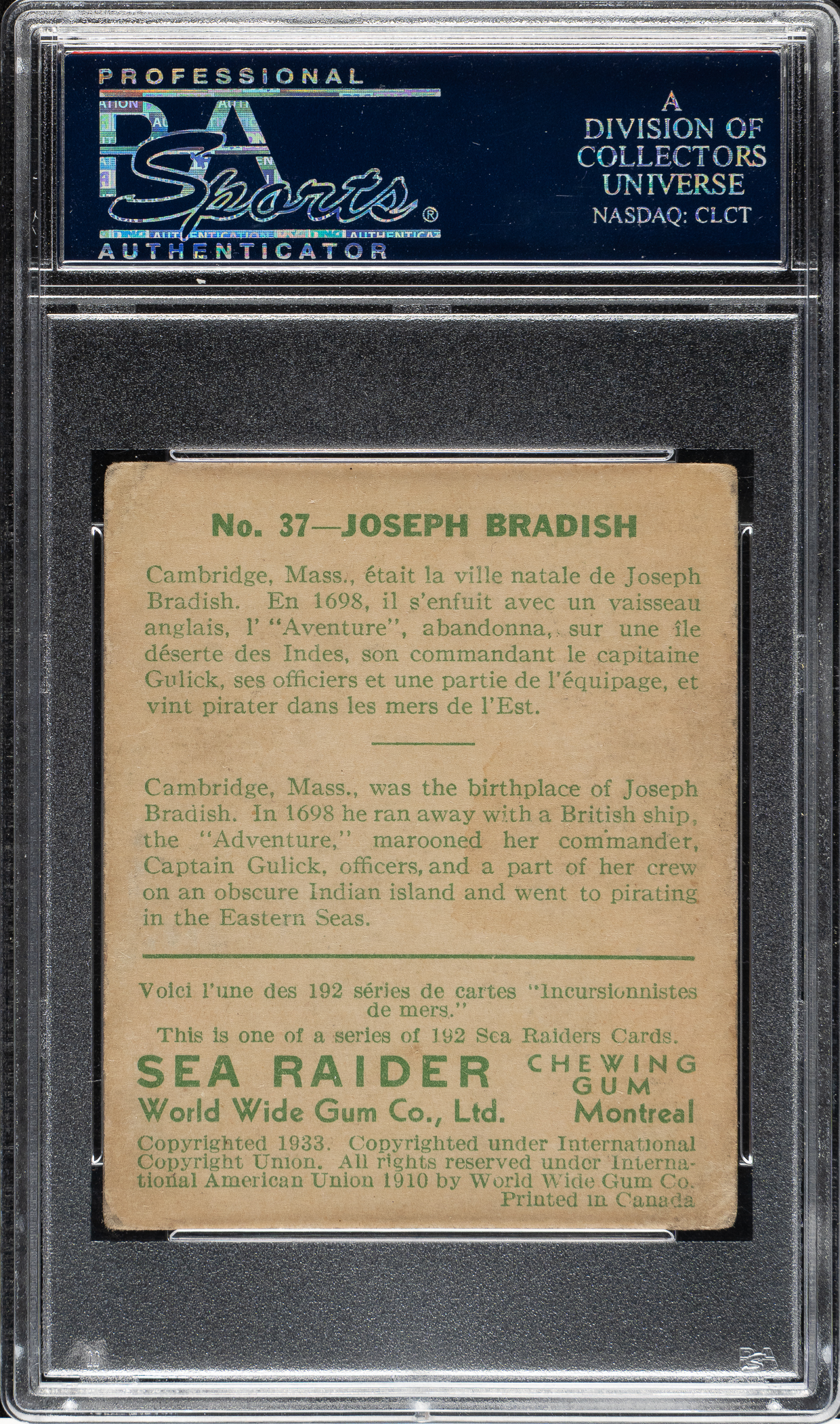 Lot 2653 1933 R124 World Wide Gum (Canadian Goudey) "Sea Raiders" #48 A Difference in Weapons High Number PSA GOOD 2