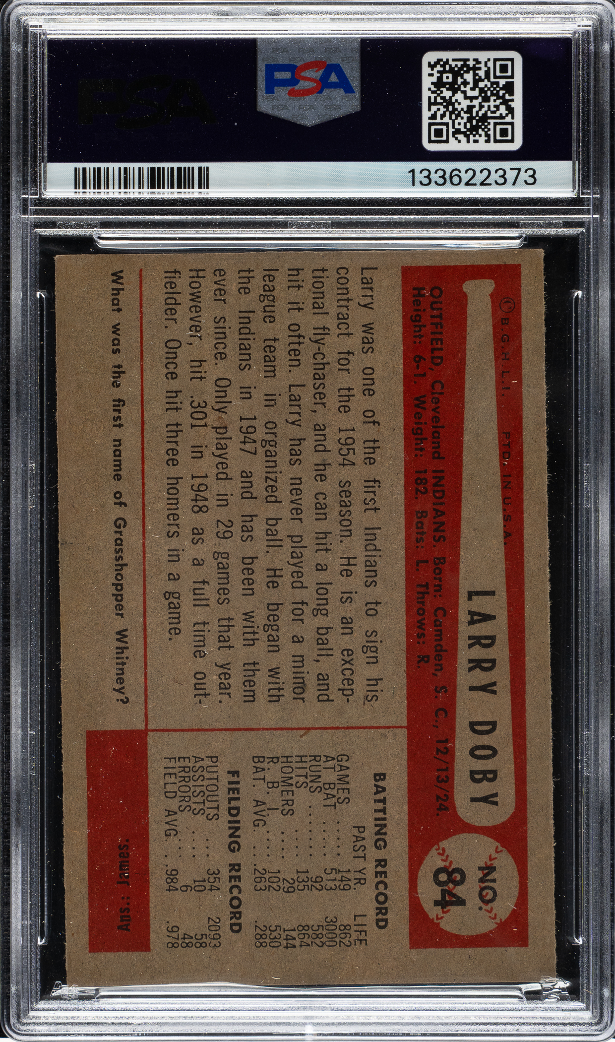Graded NM-MT 8 by PSA. Cleveland Indians Hall of Famer Larry Doby.