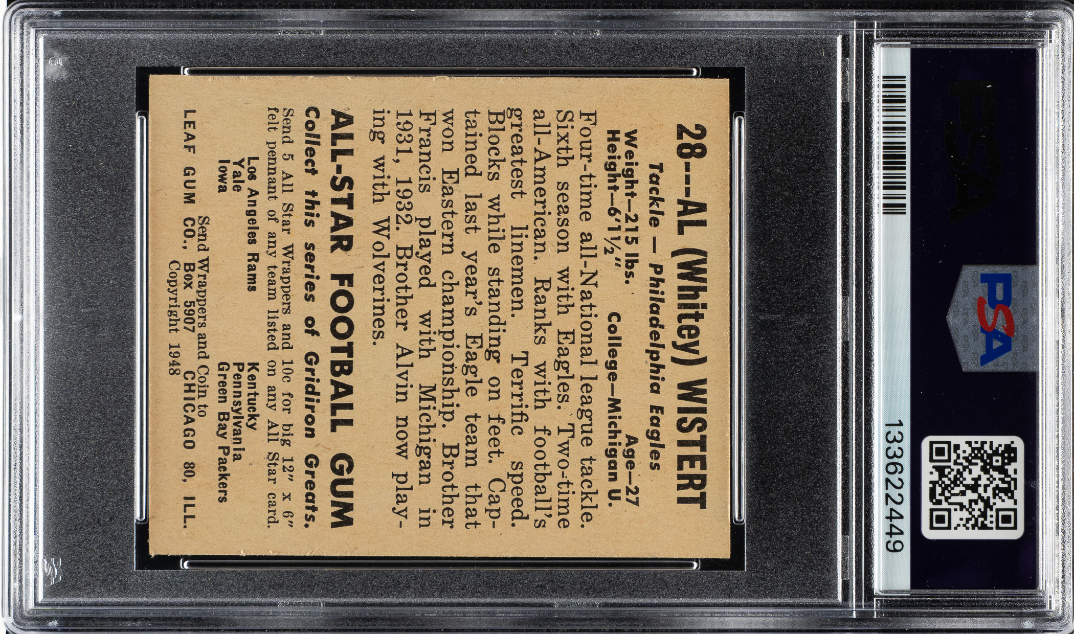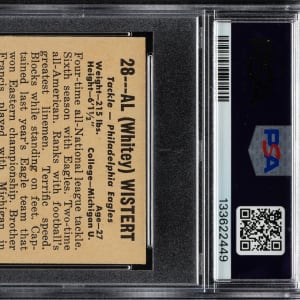 Lot # 2440: 1948 Leaf Football #28 Whitey Wistert Yellow Jersey PSA NM 7