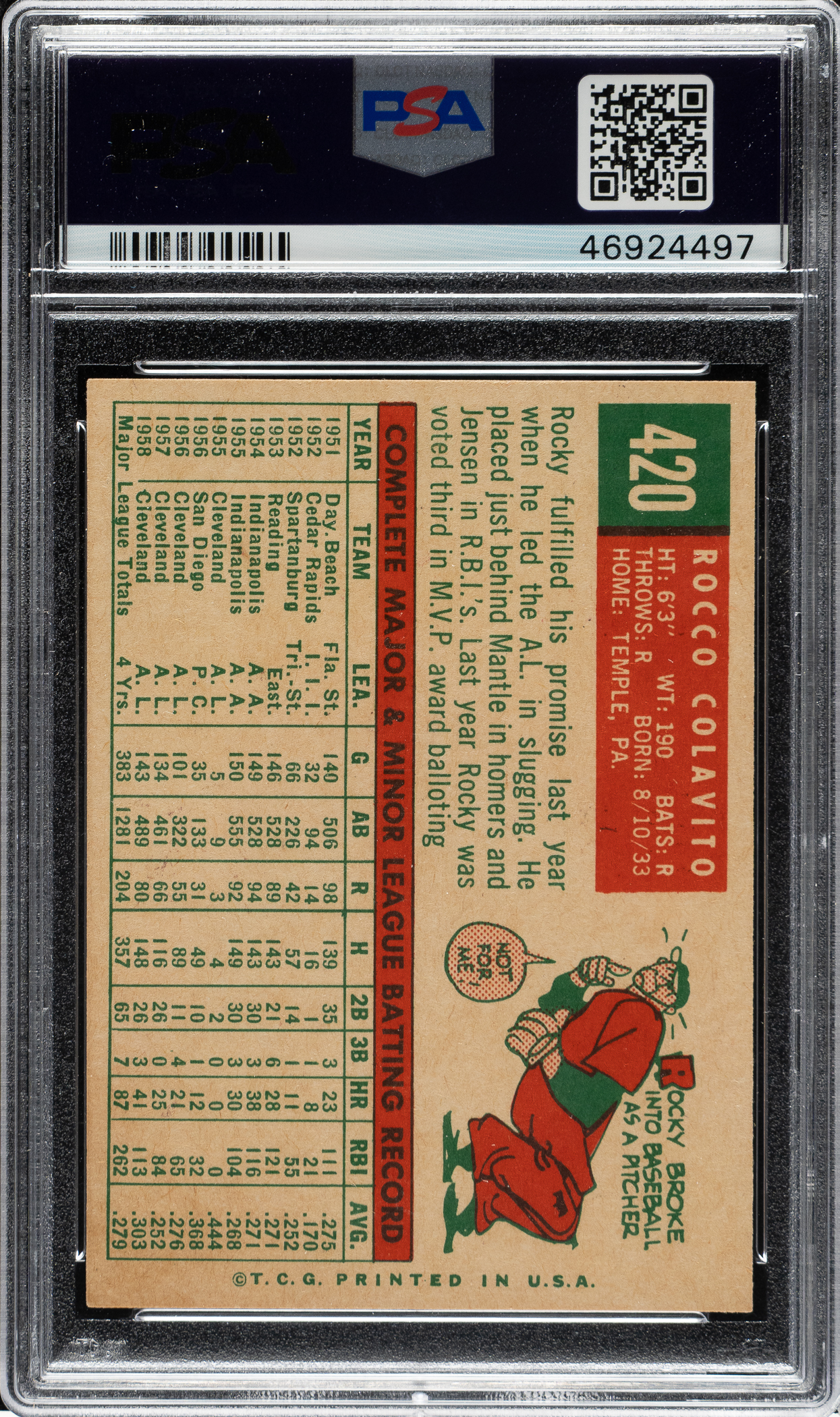 Lot # 1959: 1959 Topps #420 Rocco Colavito PSA NM 7