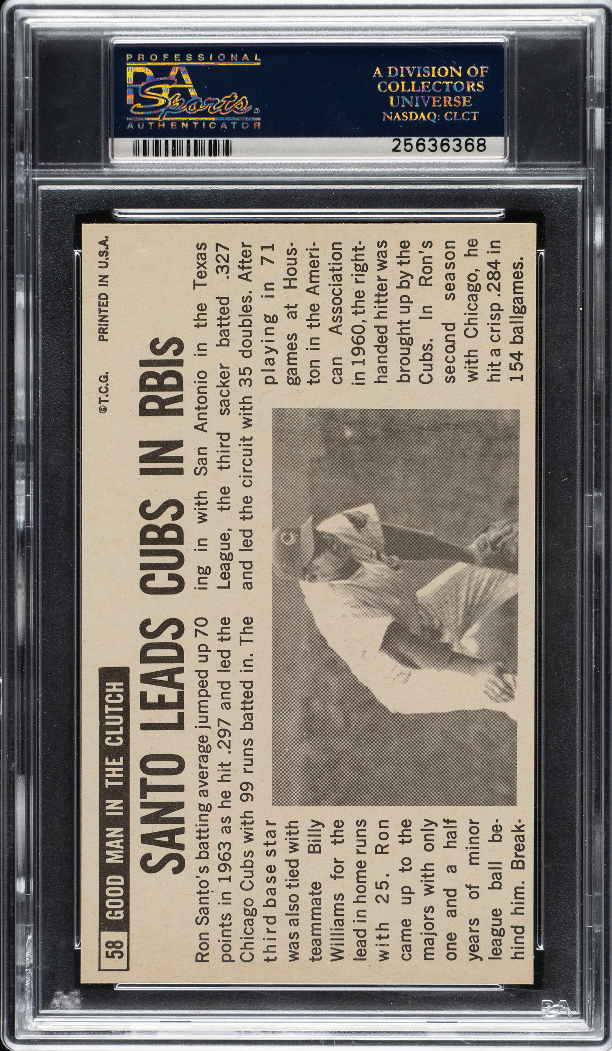 Graded MINT 9 by PSA. Chicago Cubs Hall of Famer Ron Santo.