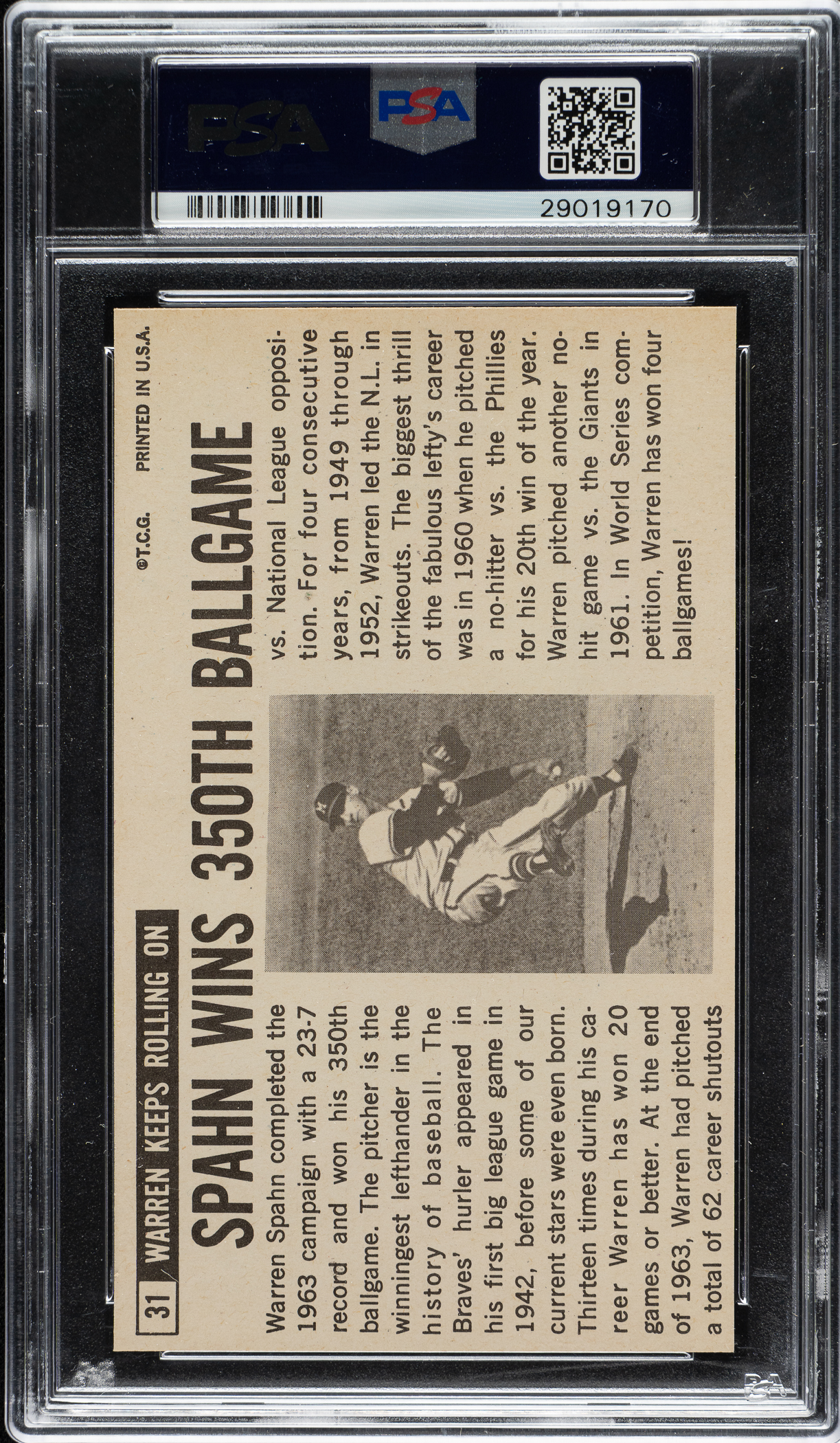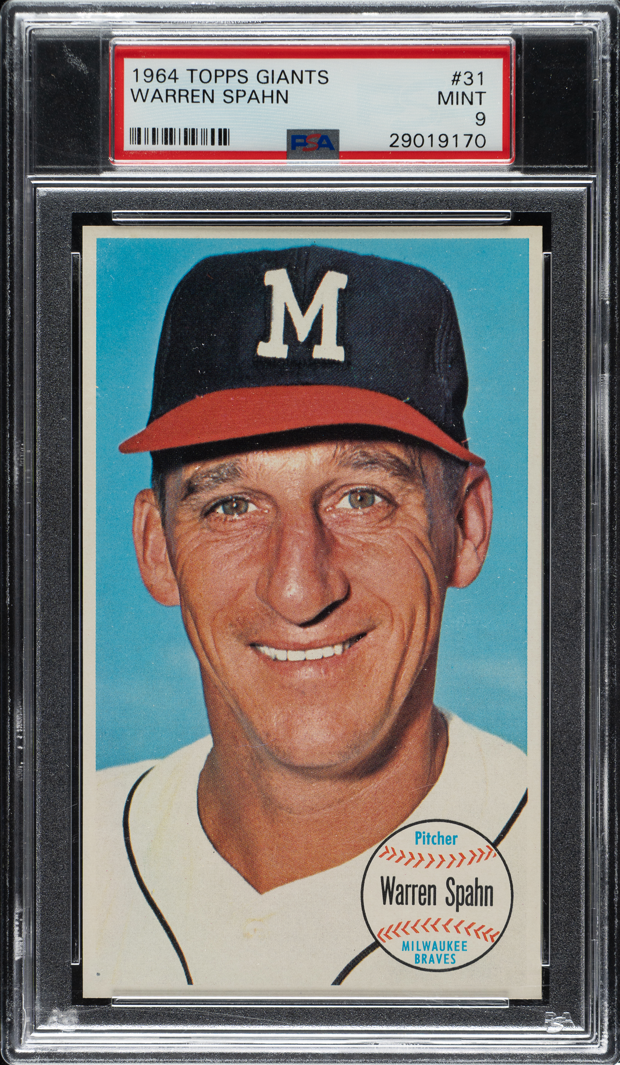 Lot # 2055: 1964 Topps Giants #31 Warren Spahn PSA MINT 9