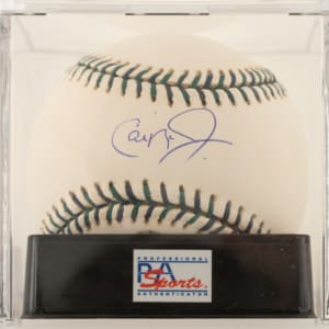 Baltimore Orioles Hall of Famer Cal Ripken Jr. signed baseball. PSA/DNA has encapsulated the baseball, grading the signature MINT 9 and the baseball MINT 9 for an overall grade of MINT 9.