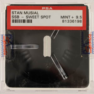 St. Louis Cardinals Hall of Famer Stan Musial signed baseball. PSA/DNA has encapsulated the baseball, grading the signature GEM MINT 10 and the baseball MINT 9 for an overall grade of MINT+ 9.5.