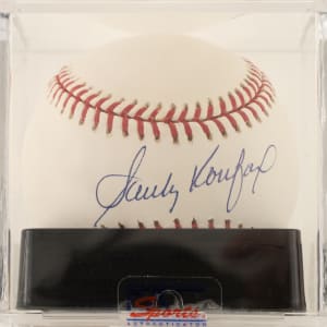 Los Angeles Dodgers Hall of Famer Sandy Koufax signed baseball. PSA/DNA has encapsulated the baseball, grading the signature MINT 9 and the baseball MINT 9 for an overall grade of MINT 9.