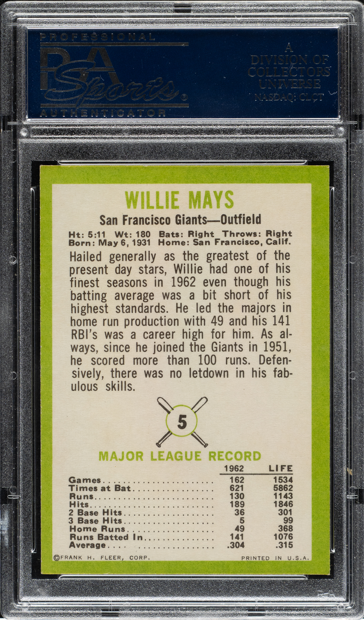 Graded NM-MT 8 by PSA. San Francisco Giants Hall of Famer Willie Mays.