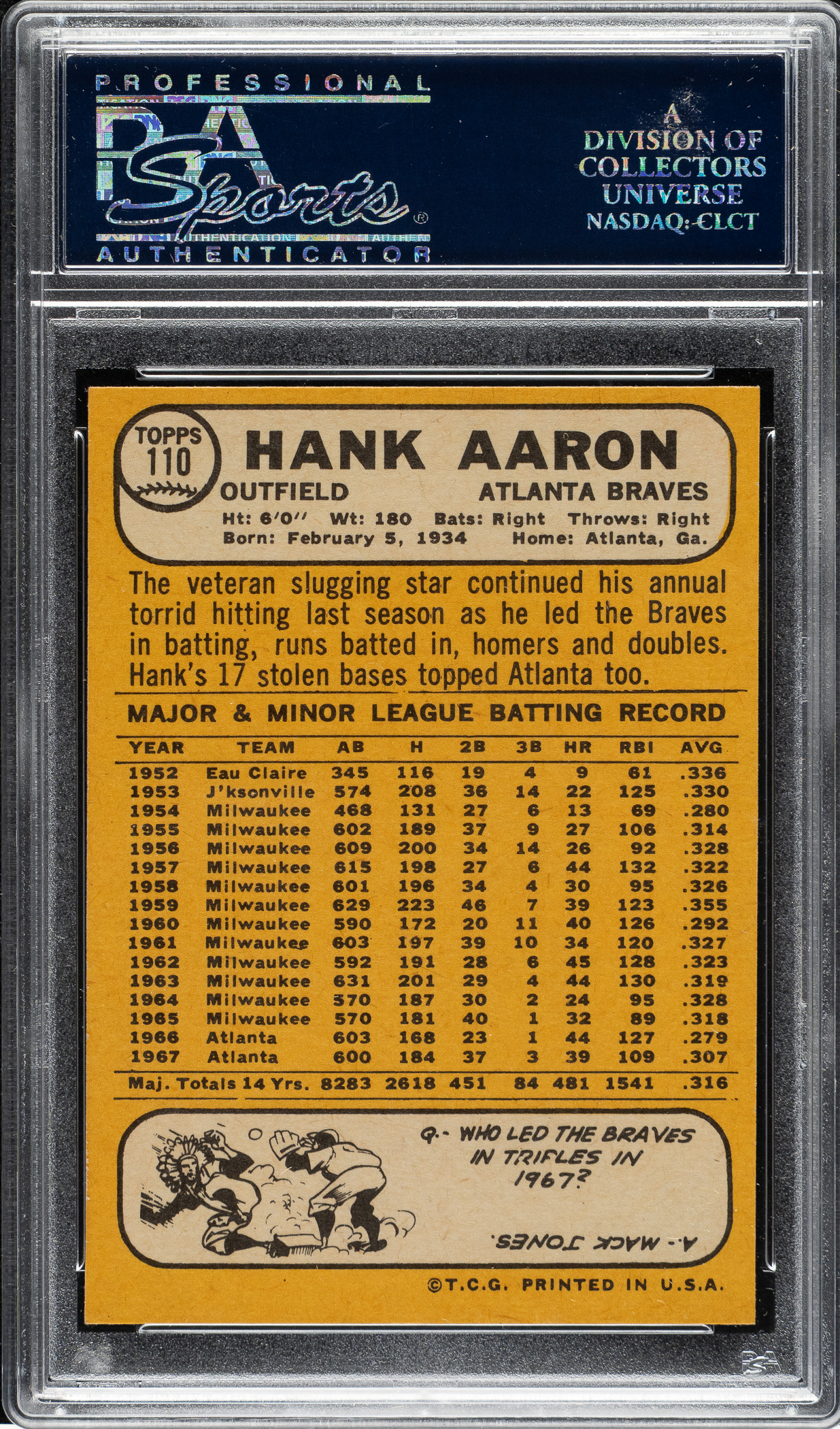 Lot # 1669: 1968 Topps #110 Hank Aaron PSA NM-MT 8