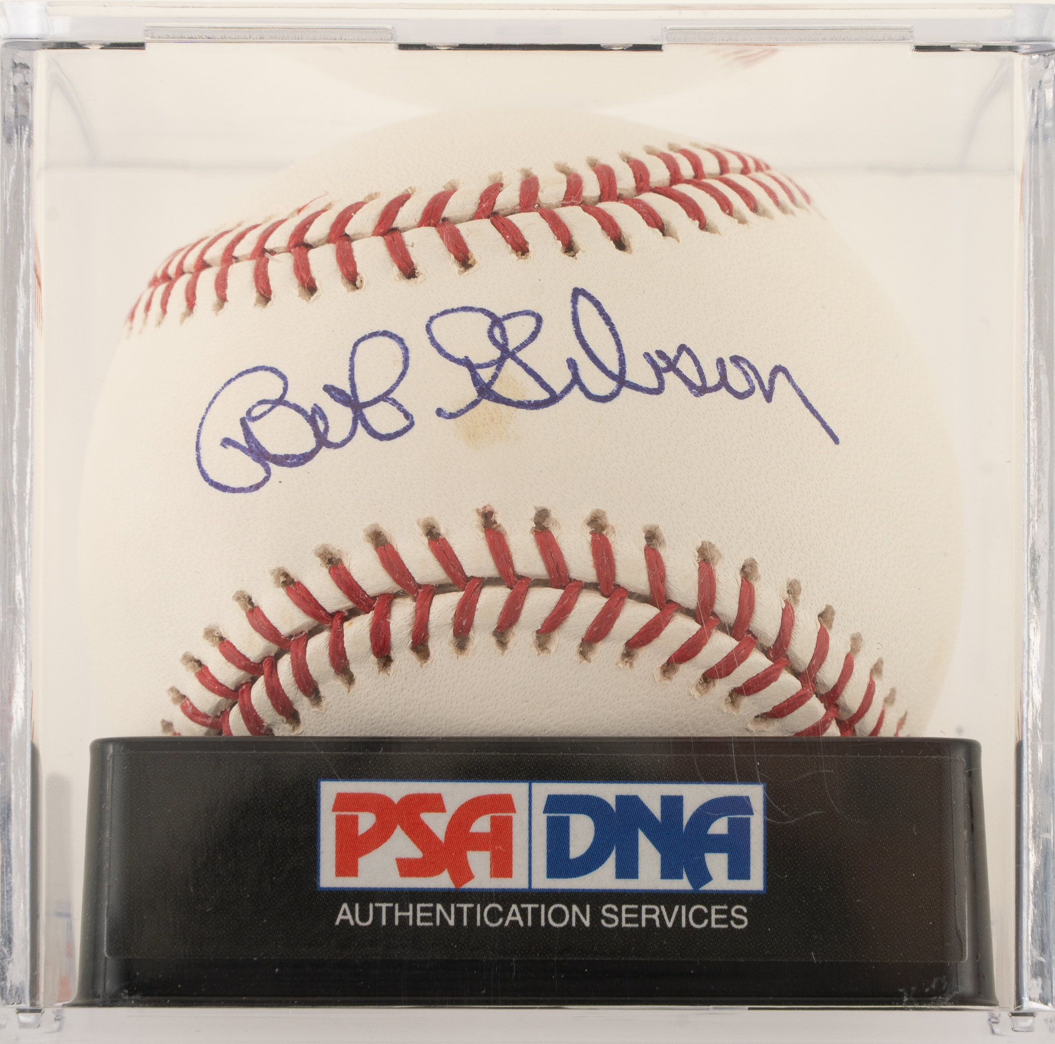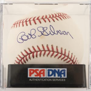 St. Louis Cardinals Hall of Famer Bob Gibson signed baseball. PSA/DNA has encapsulated the baseball, grading the signature GEM MINT 10 and the baseball GEM MINT 10 for an overall grade of GEM MINT 10.