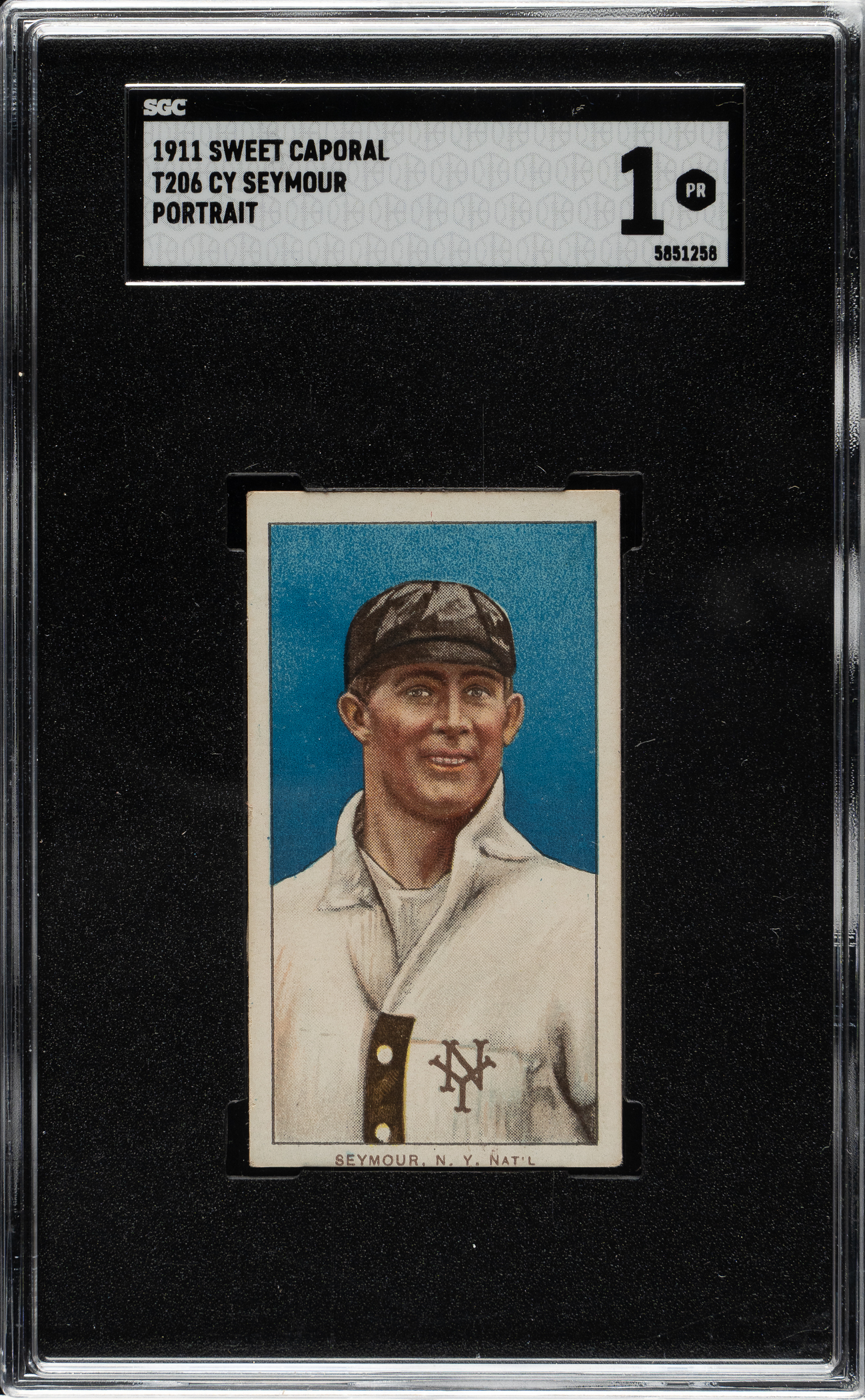 MP# 2884 1909-1911 T206 White Border Cy Seymour Portrait SGC POOR 10 - Black Lenox Back Buy Now – $1,800