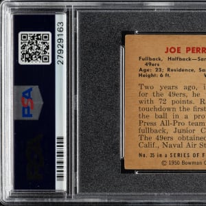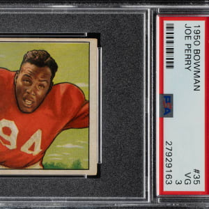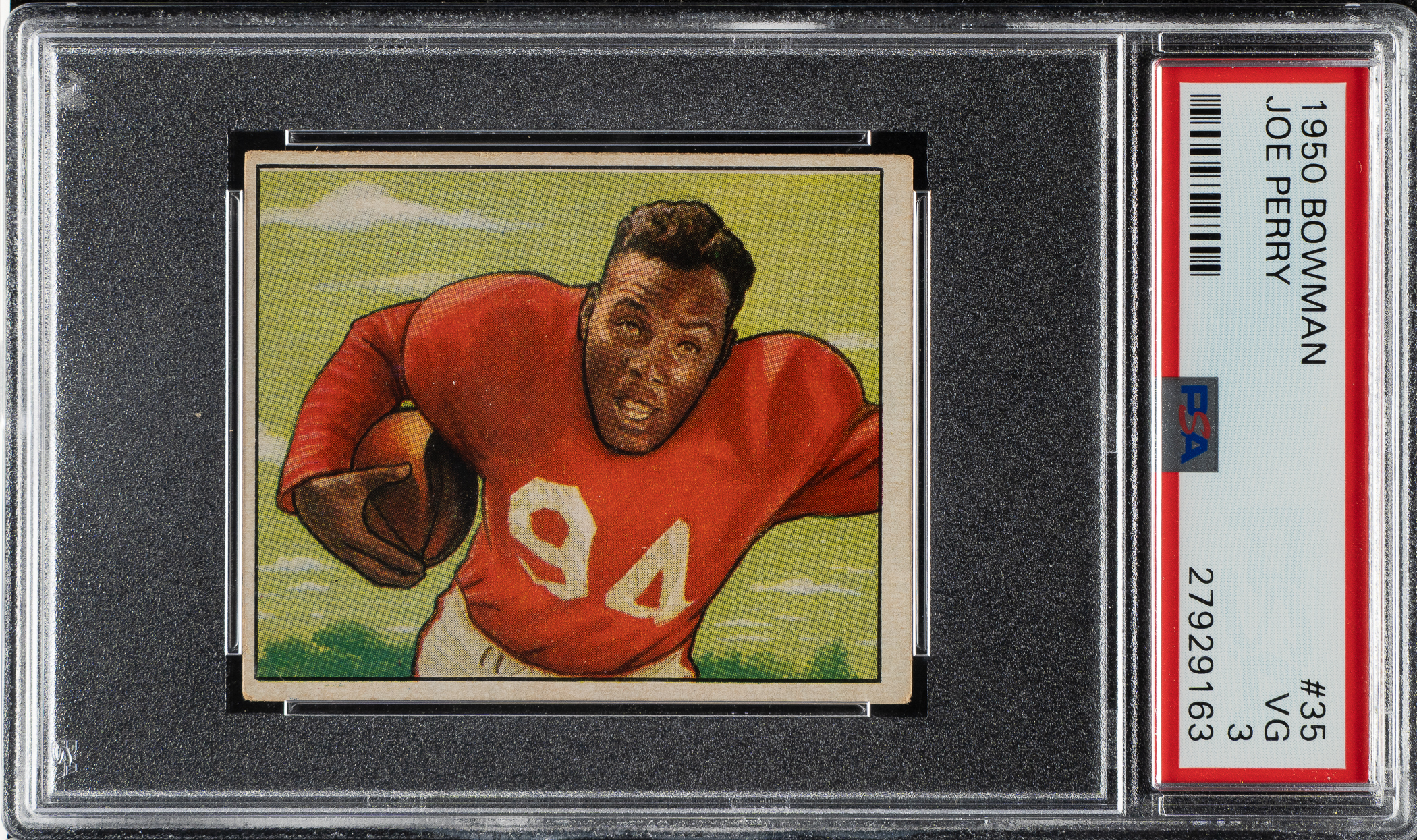 Lot # 2445: 1950 Bowman Football #35 Joe Perry Rookie PSA VG 3