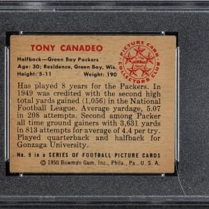 Lot 2452 1952 to 1957 Topps and Bowman Football SGC- and PSA-Graded Trio: Frank Gifford, John Sandusky, and Eddie Lebaron