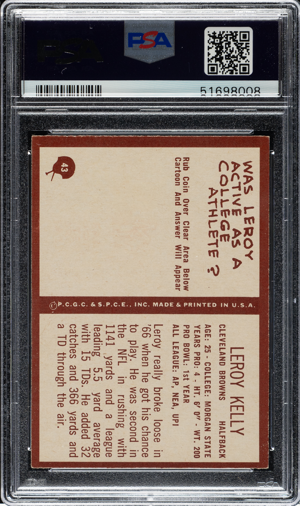 Graded EX 5 by PSA. Cleveland Browns football Hall of Famer Leroy Kelly.