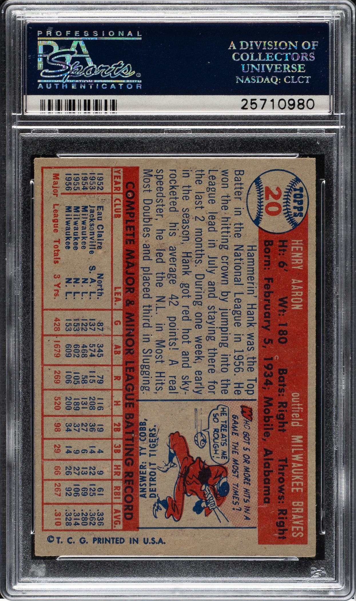Lot # 1901: 1957 Topps #20 Hank Aaron PSA EX-MT 6