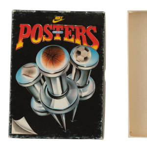Scarce original display box from the circa 1983-1985 Nike 5 x 7 Sport Posters series. Featuring a number of miniature posters of basketball stars including Michael Jordan, this set remains popular, and this empty display box is an ideal companion piece. Very Good condition overall.