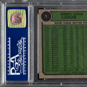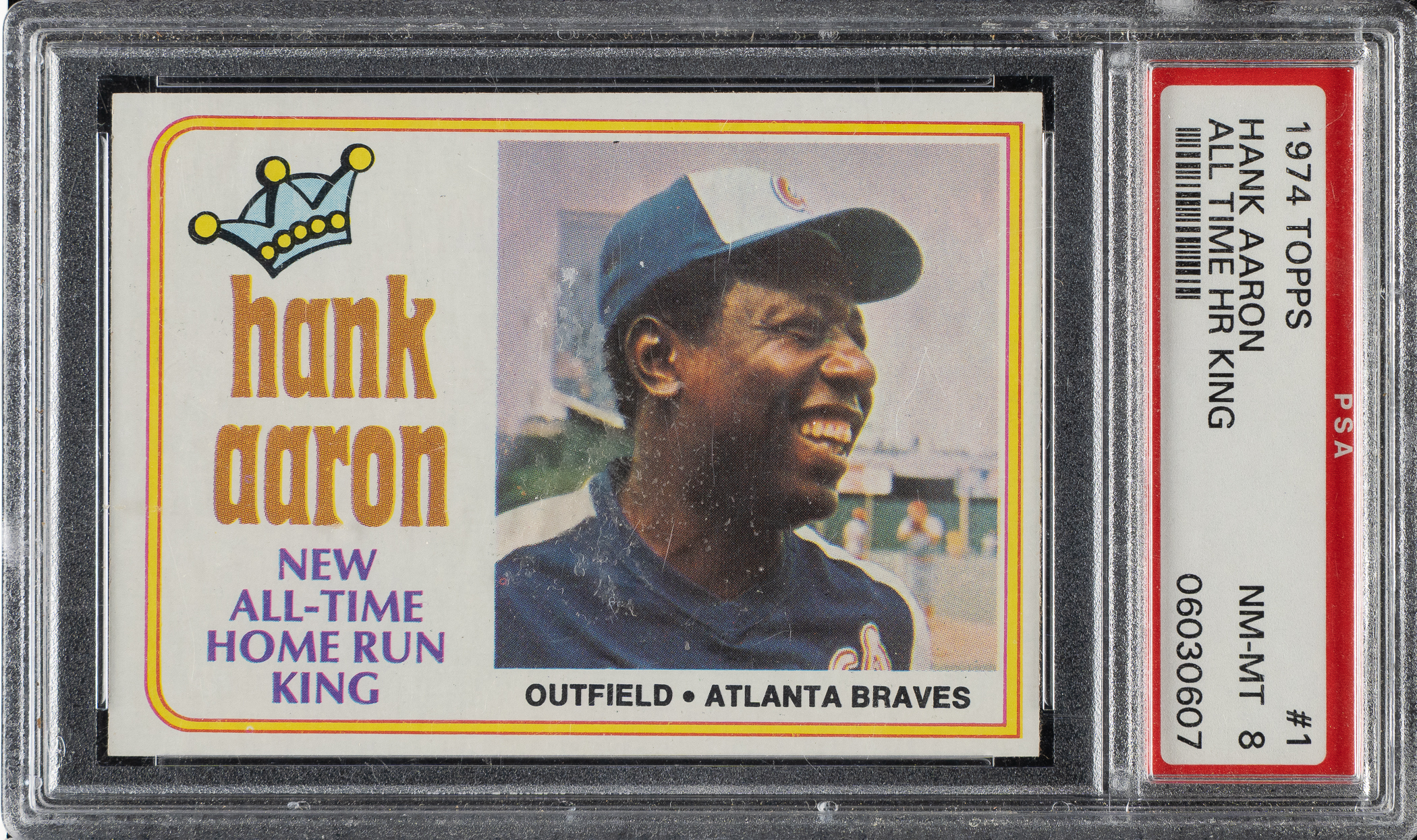 Lot # 2145: 1974 Topps #1 Hank Aaron All-Time Home Run King PSA NM-MT 8