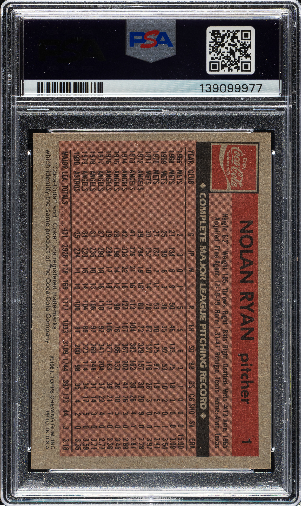 MP# 1625 1982 Topps Unopened Cello Pack PSA MINT 9 - ERA Leaders with Nolan Ryan on Top Buy Now – $180